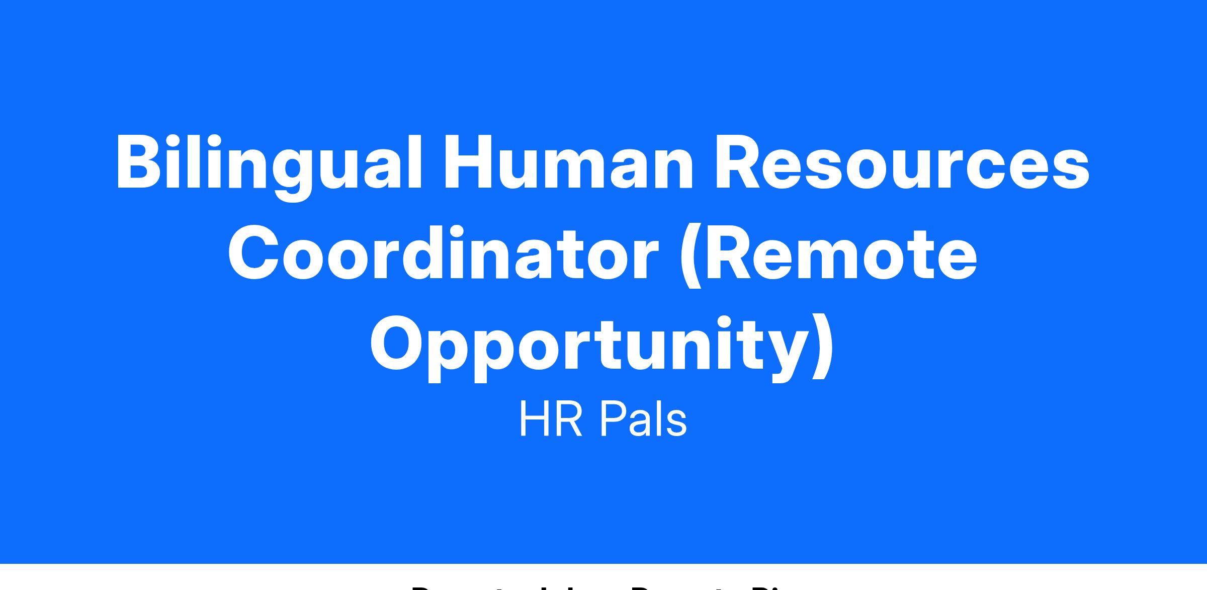 Bilingual Human Resources Coordinator (Remote Opportunity)