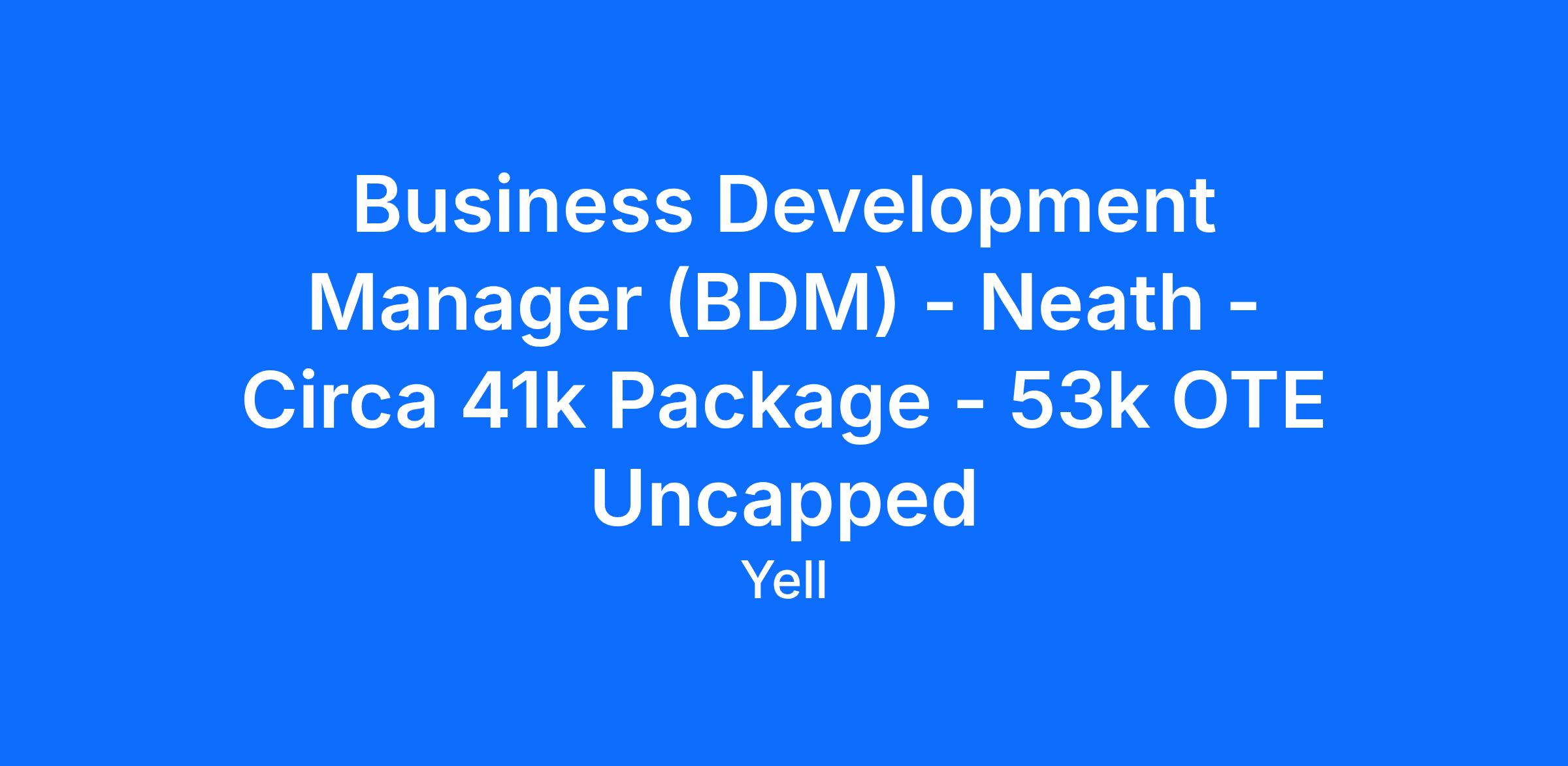 Business Development Manager (BDM) - Neath - Circa 41k Package - 53k OTE Uncapped