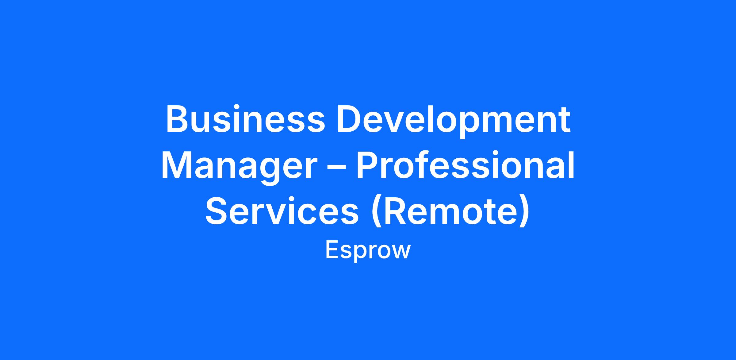 We are looking for a talented Business Development Manager to expand Esprow’s pprofessional services business within the global capital markets industry.