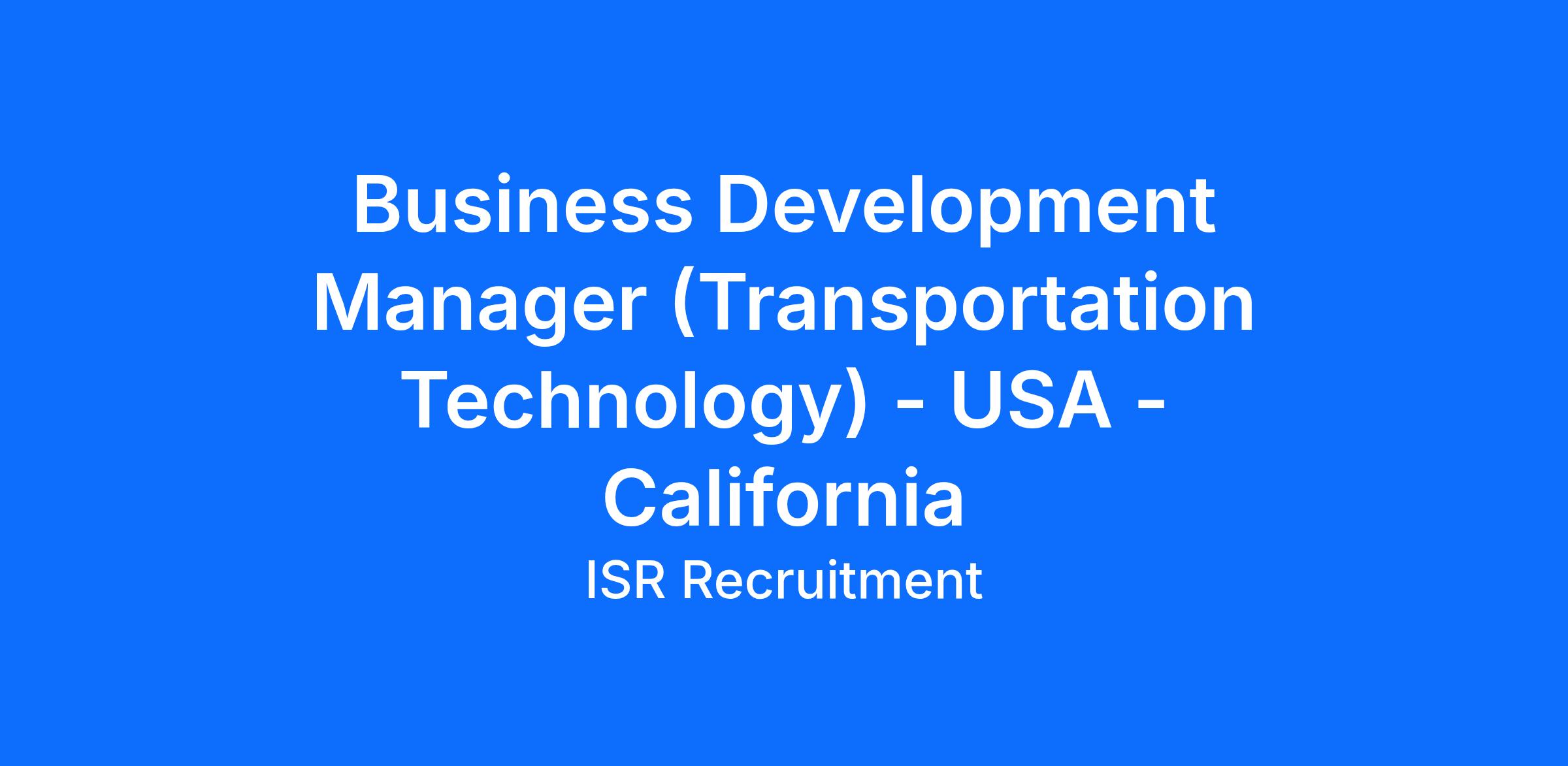 To learn more about our client and this opportunity working as a Business Development Manager based out of California working at the heart of the transport technology transformation both in the USA and globally; please call James Sample on +1 (813) 252-1508 or please send your CV (james@isr.uk.com) for more information.
