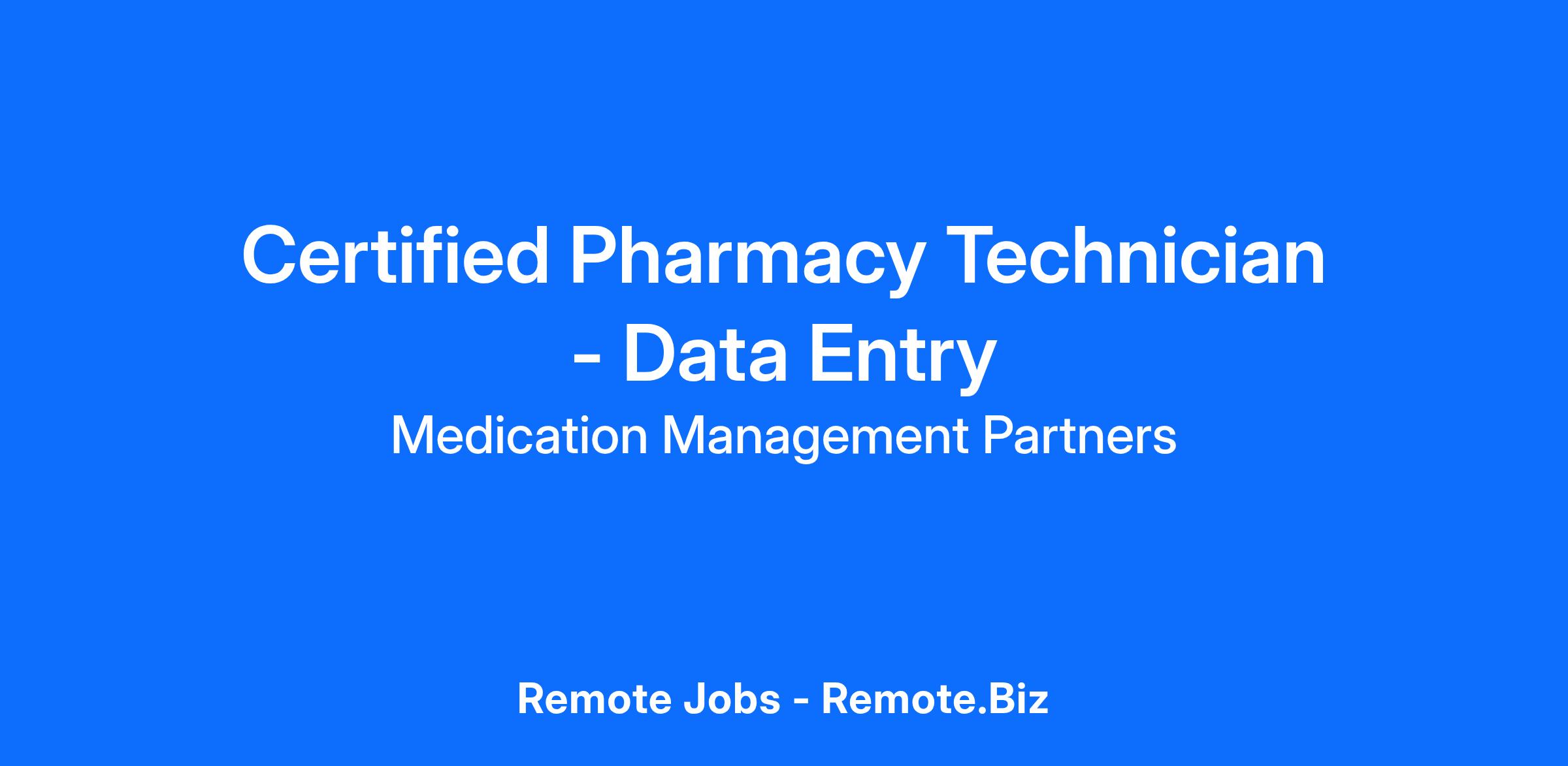 We are actively looking for Remote Certified Data Entry Pharmacy Technician - multiple openings!