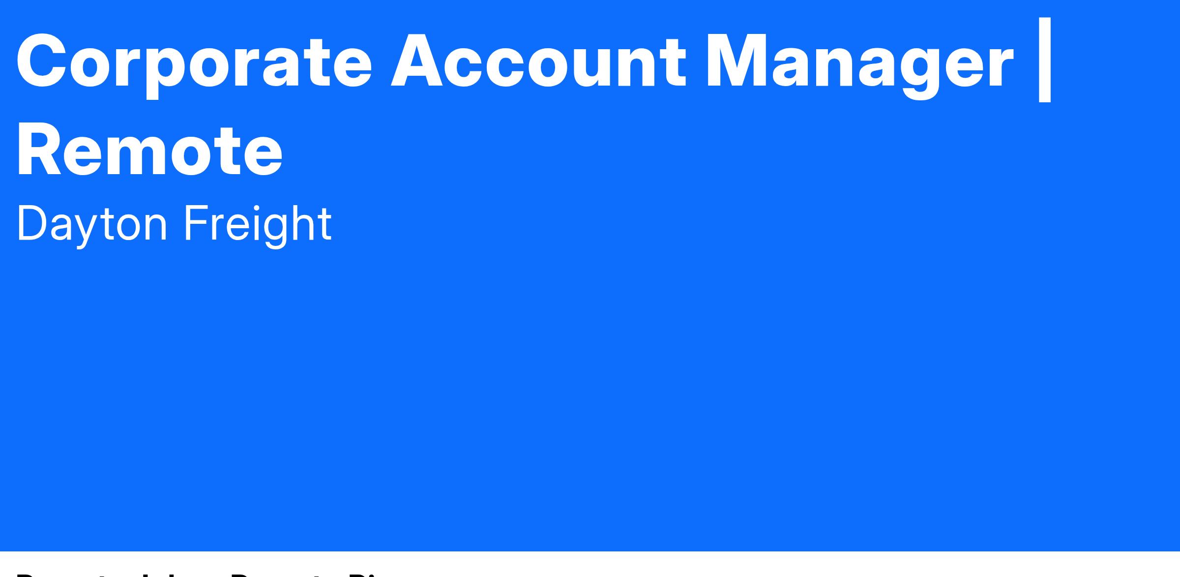 Corporate Account Managers develop sales/marketing action plans to maximize territory revenue, as well as provide customized business solutions for prospects and customers.