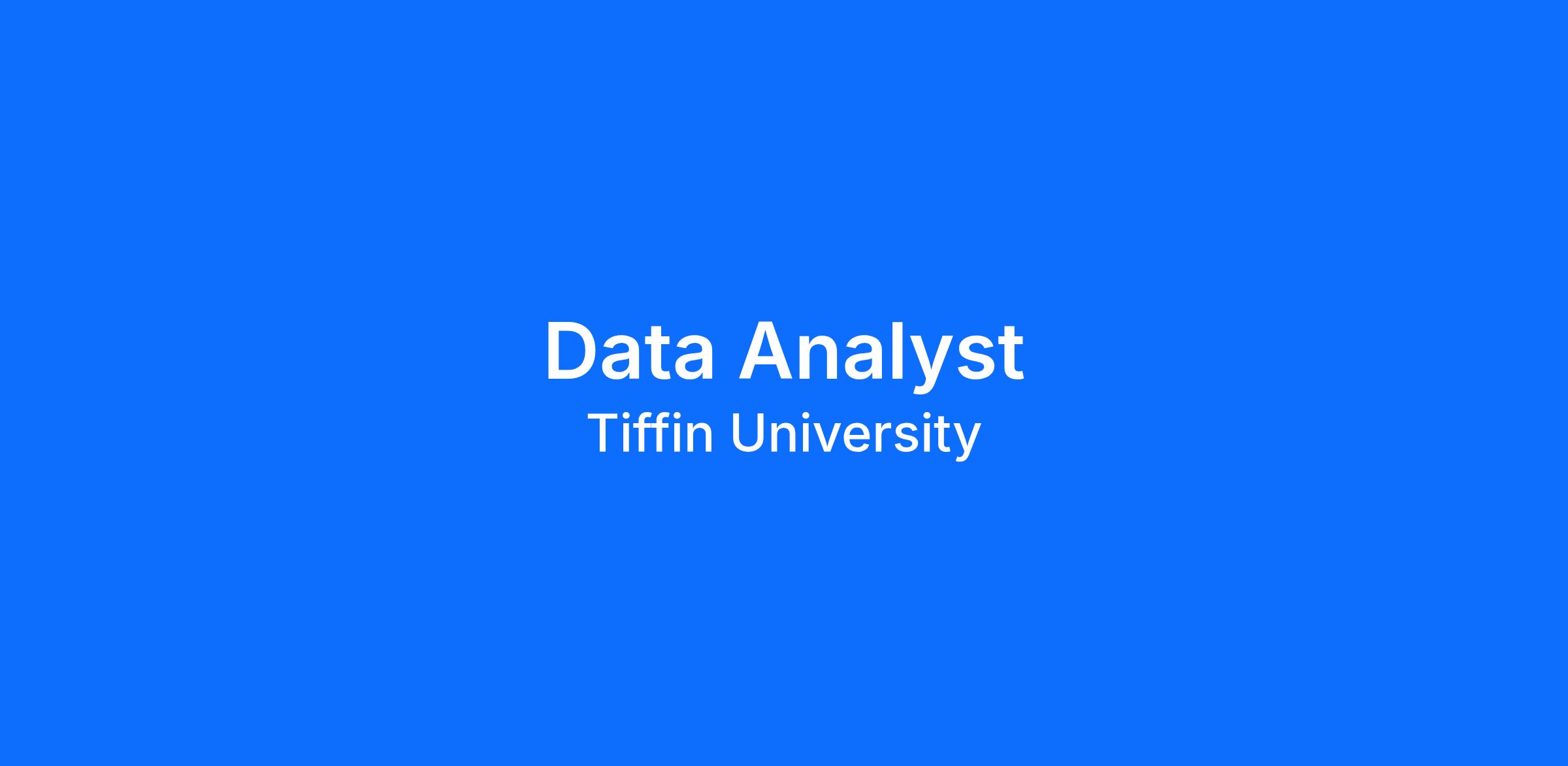 The Data Analyst works collaboratively with the Director of Institutional Research as well as various offices to meet data demands and provide sound business decisions for Tiffin University. The Data Analyst duties include, but are not limited to, extracting data figures, creating reports based on their findings, and monitoring key performance indicators (KPIs) to determine business initiatives’ success.