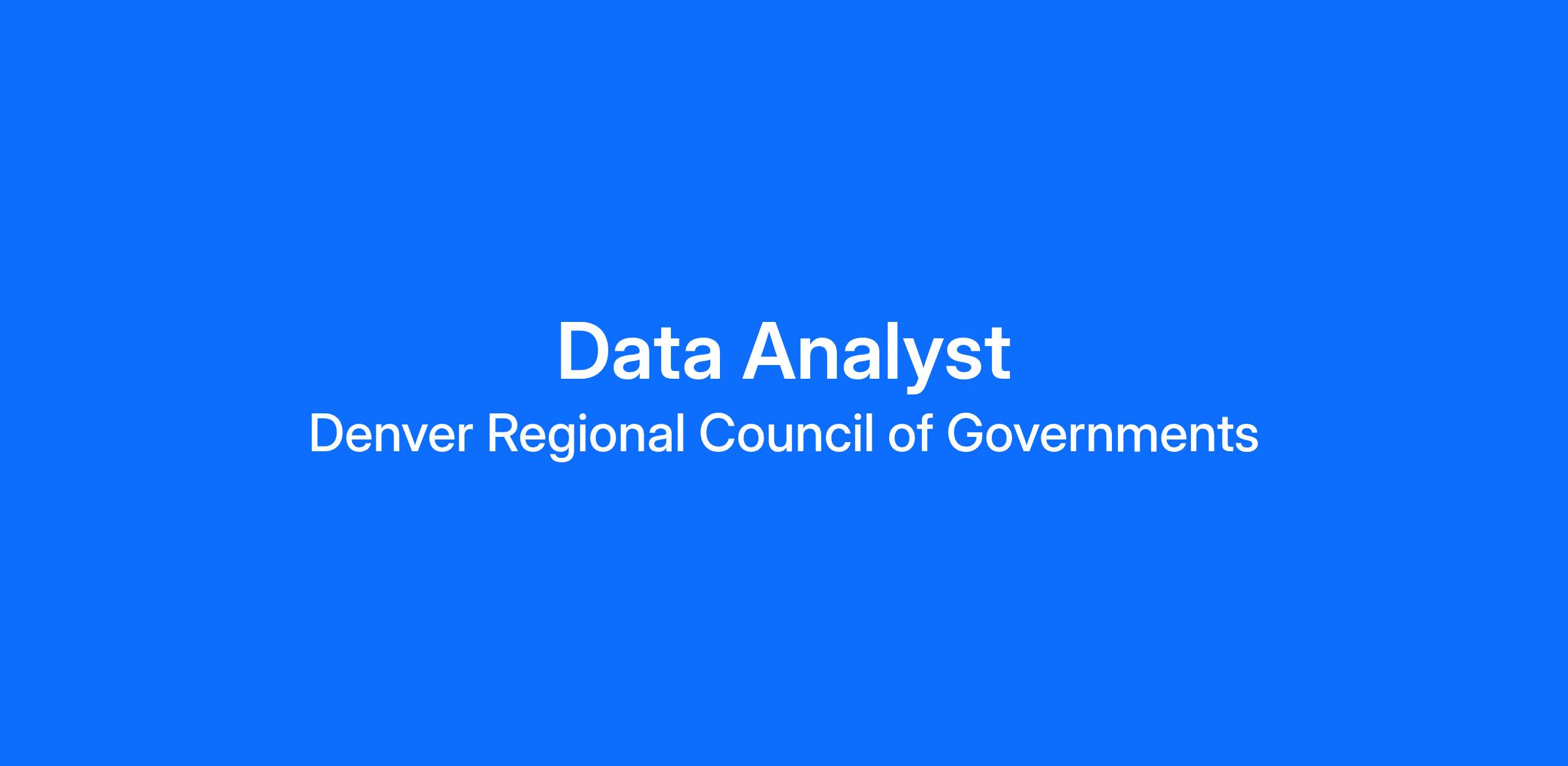 The Denver Regional Council of Governments (DRCOG) is hiring a Data Analyst position to join the Data Science and Analytics Team. This position will be integral to DRCOG data analysis and forecasting work and will be tasked with helping to improve the quality of data products developed and maintained by the Data Science and Analytics Team as well as enhance the capacity for the team to produce and share new and innovative data visualization products. The Data Science and Analytics Team works primarily in Python; however, other coding languages as well as data visualization and GIS skills will be an asset.