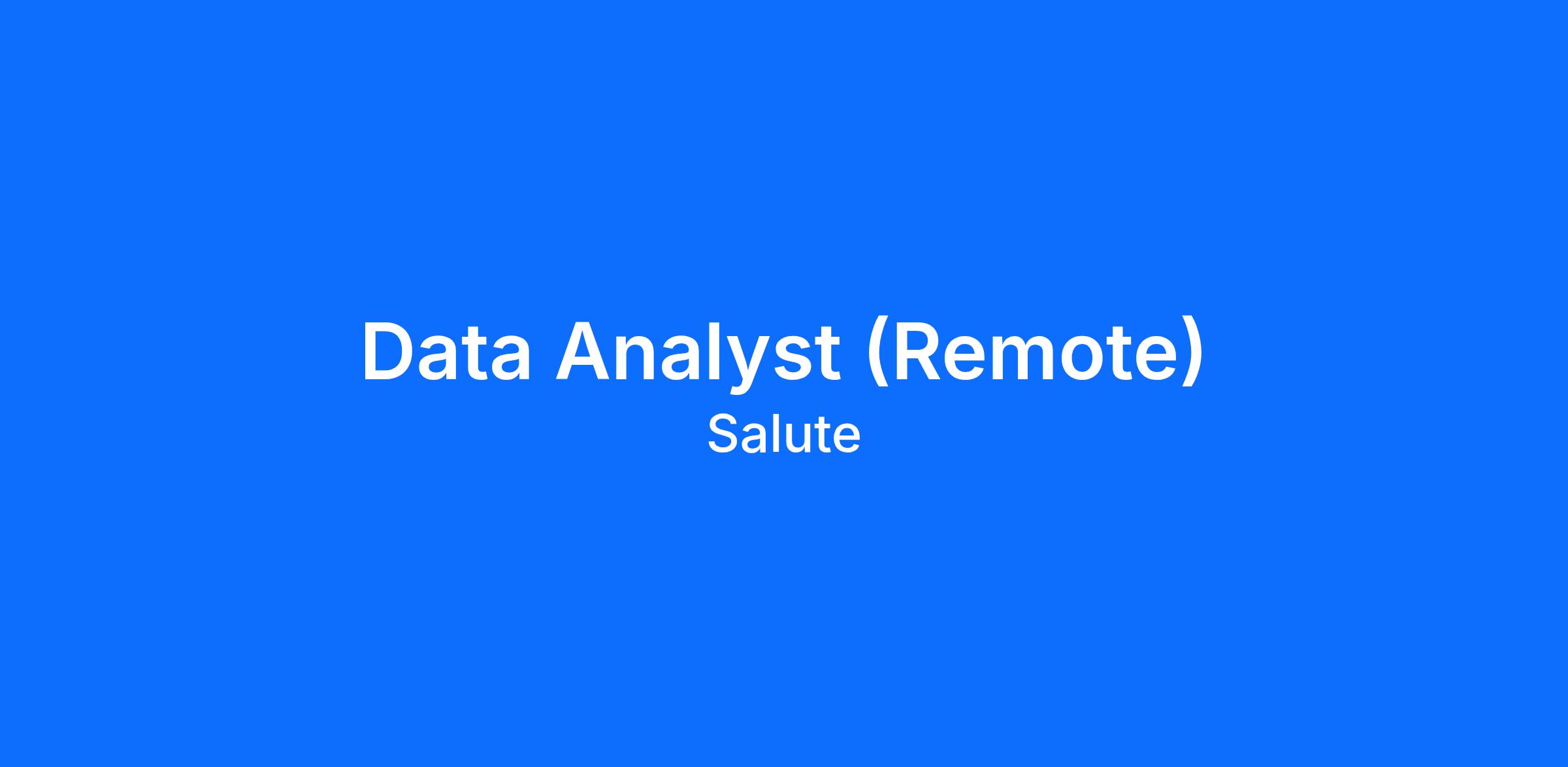 Salute is an equal opportunity employer committed to celebrating diversity, creating an inclusive environment for all employees, and providing equal employment opportunities to all applicants; if you require a reasonable accommodation to participate in the job application or interview process, perform essential job functions, or receive other benefits and privileges of employment, please contact our Human Resources department at hr@salute.com for more information.