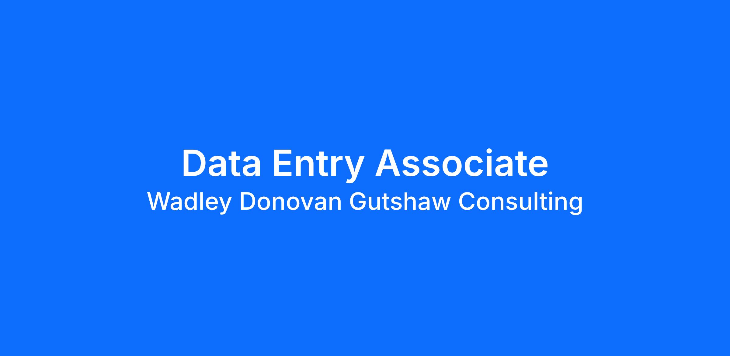 Wadley Donovan Gutshaw Consulting is seeking a detail-oriented and dependable Data Entry Associate to support our consulting projects through accurate and timely data input, verification, and management. The ideal candidate will contribute to the integrity and accuracy of client and internal databases that drive our analysis and recommendations.