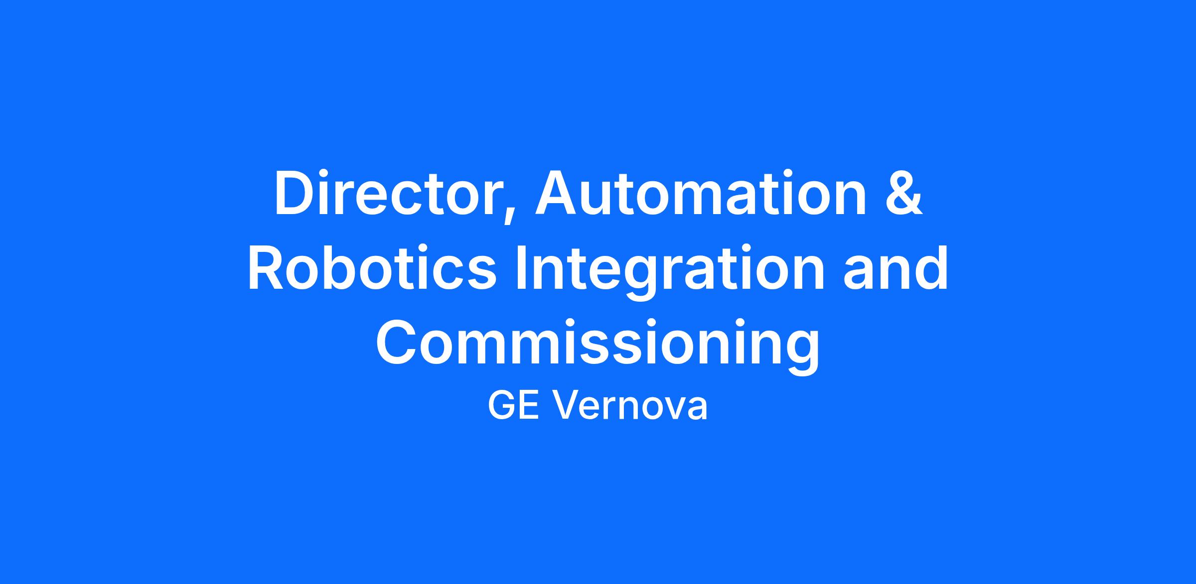 Director, Automation & Robotics Integration and Commissioning leads GE Vernova’s enterprise team responsible for building and deploying automation solutions globally. This executive guides projects from concept to safe, reliable production at scale, partnering with system integrators, site readiness teams, technology architects, and business stakeholders. The Director sets integration standards and commissioning processes for the organization and manages vendor performance—ensuring every automation solution is delivered on time, on budget, and safely, meeting rigorous operational and performance requirements. Reporting to the Director, Robotics & Automation CoE, this leader works cross-functionally to drive transformation and represents GE Vernova at the highest industry and executive levels.