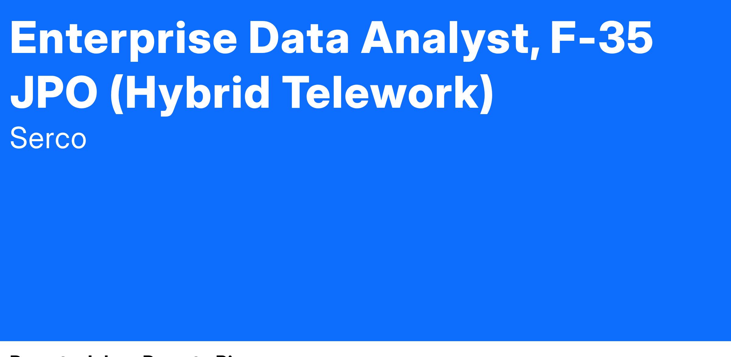 Our Enterprise Data Analyst, located in Crystal City, Arlington, VA, supports the F-35 Directorate of Acquisition Integration and Accountability (DA&A) in its role managing the Joint Program Office (JPO) functions as they relate to business operations, foreign compliance, process improvement, cost, requirements, and acquisition.