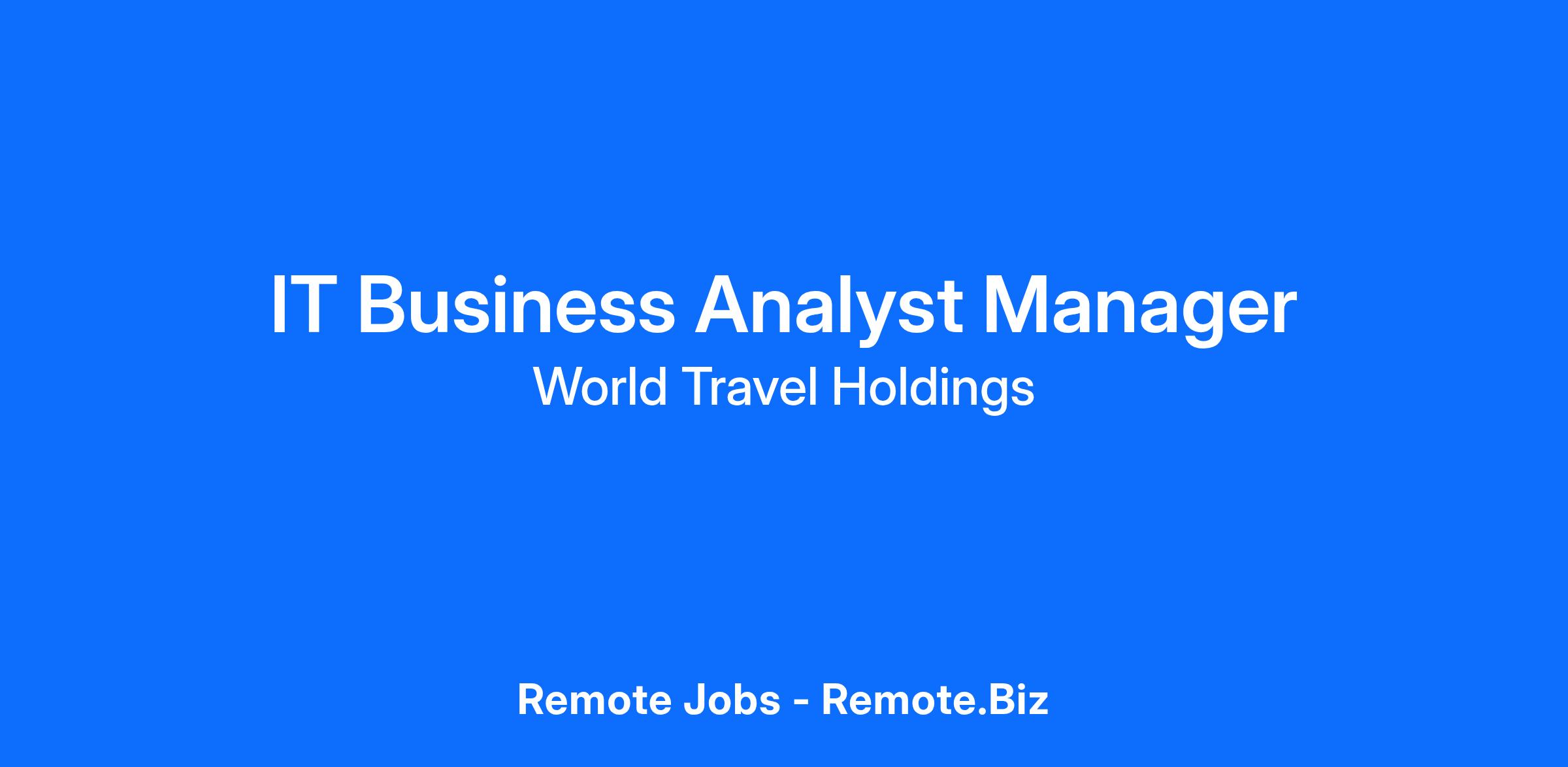 World Travel Holdings is seeking an experienced, remote IT Business Analyst Manager to help us deliver innovative solutions that make leisure travel more accessible and fun. This crucial role will oversee and lead a team of business analysts in a hybrid waterfall/agile process and partner with strategic business partners and technical leaders to bridge the gap between business and technology. The ideal candidate will be an excellent critical and strategic thinker, be a strong team leader and have a deep understanding of business analysis methodologies and best practices.