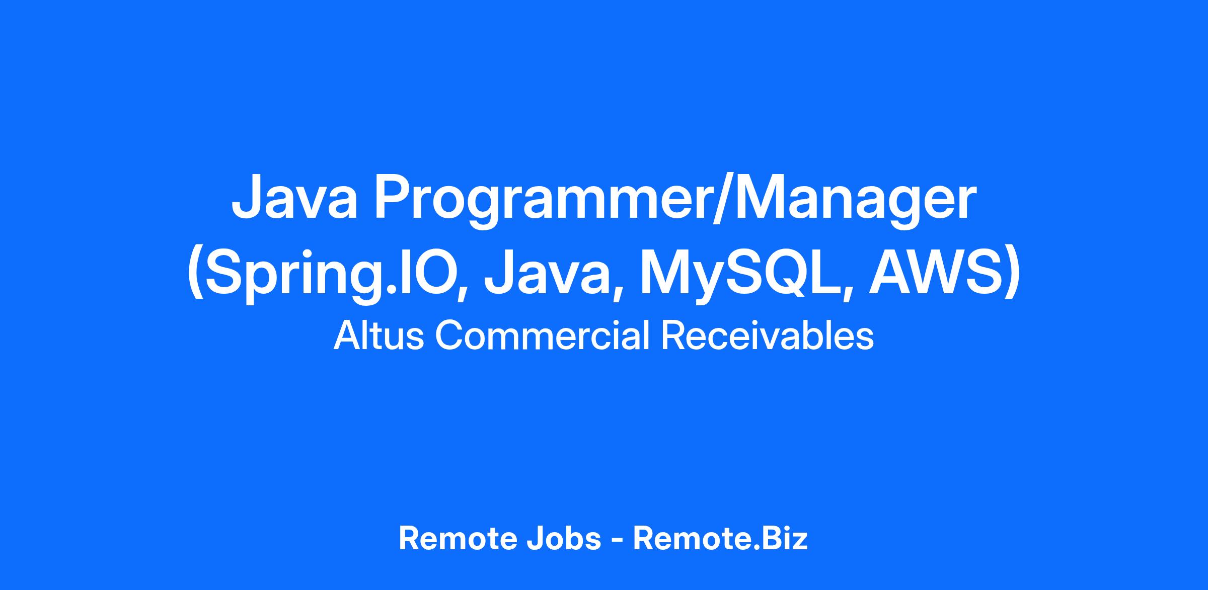 Altus is seeking a Java Programmer/Manager to lead the development and infrastructure initiatives of our technology team. The ideal candidate will have strong hands-on expertise in Spring.IO, Java programming, MySQL database management, and AWS cloud services (EC2, Elastic Services, S3, and file transfer protocols). This role requires a combination of technical depth and leadership ability, overseeing development projects while managing a team and ensuring alignment with business objectives.