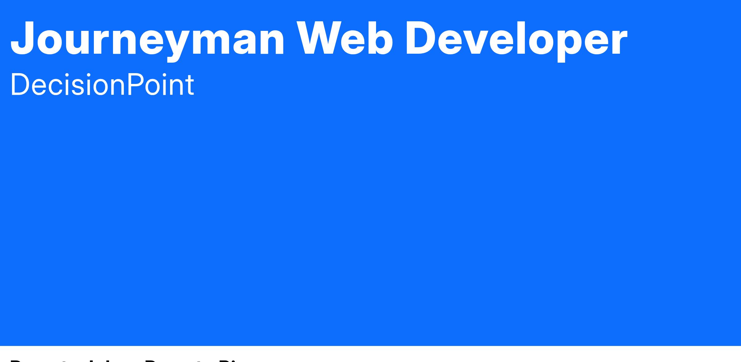 DecisionPoint Corporation is seeking an experienced Journeyman Web Developer to join our team supporting the Personnel Enterprise Decision Support System (PEDSS) contract.