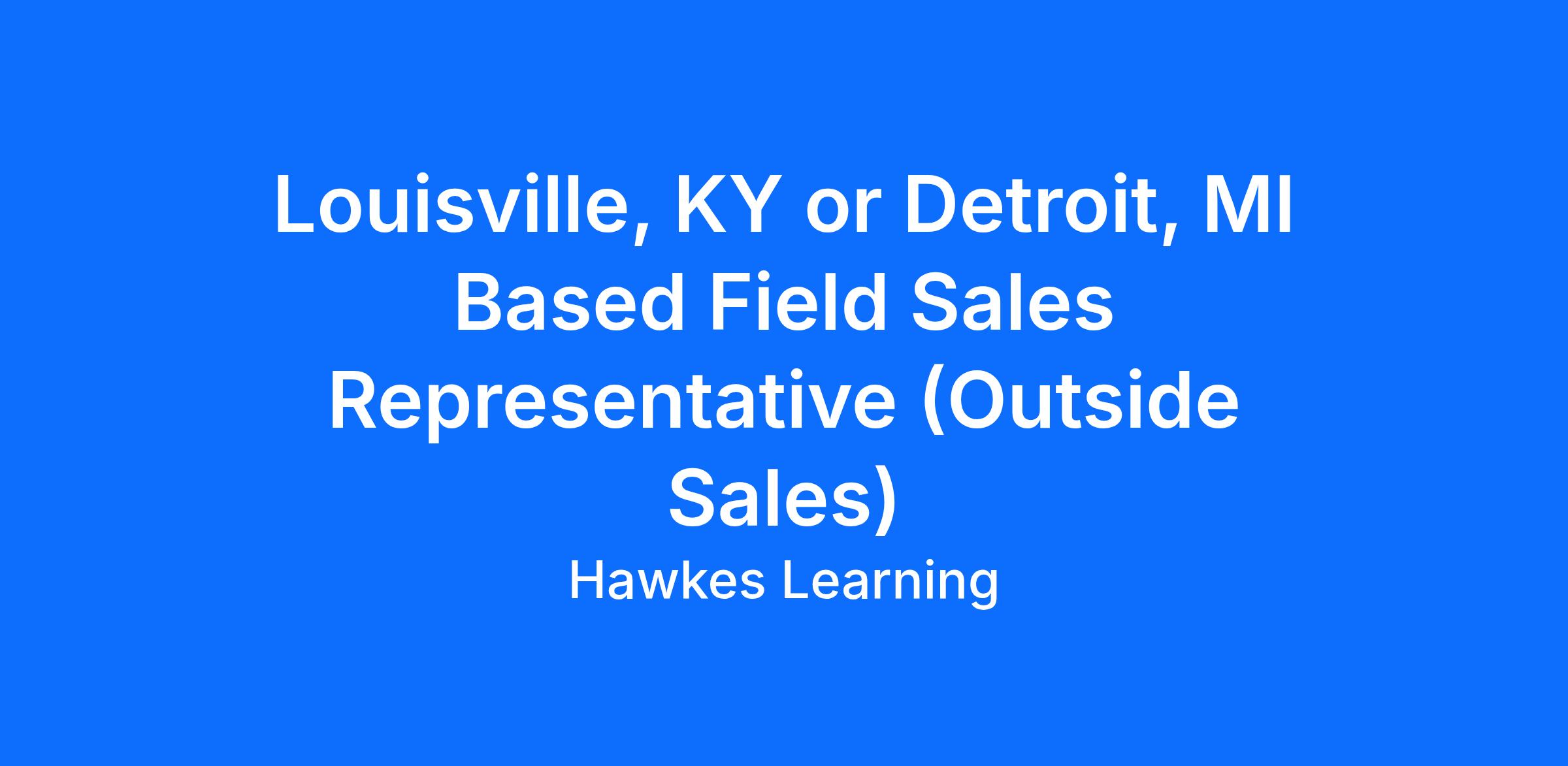 Louisville, KY or Detroit, MI Based Field Sales Representative (Outside Sales)