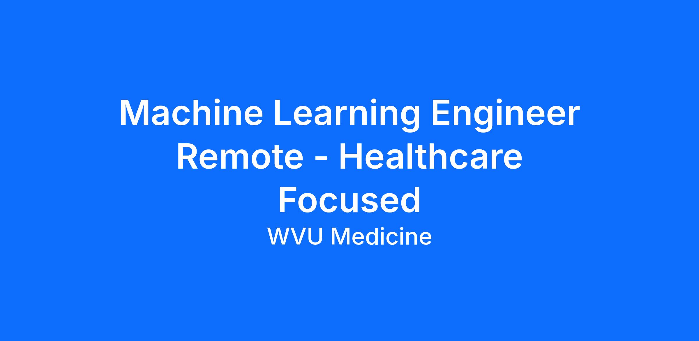 Machine Learning Engineer Remote - Healthcare Focused