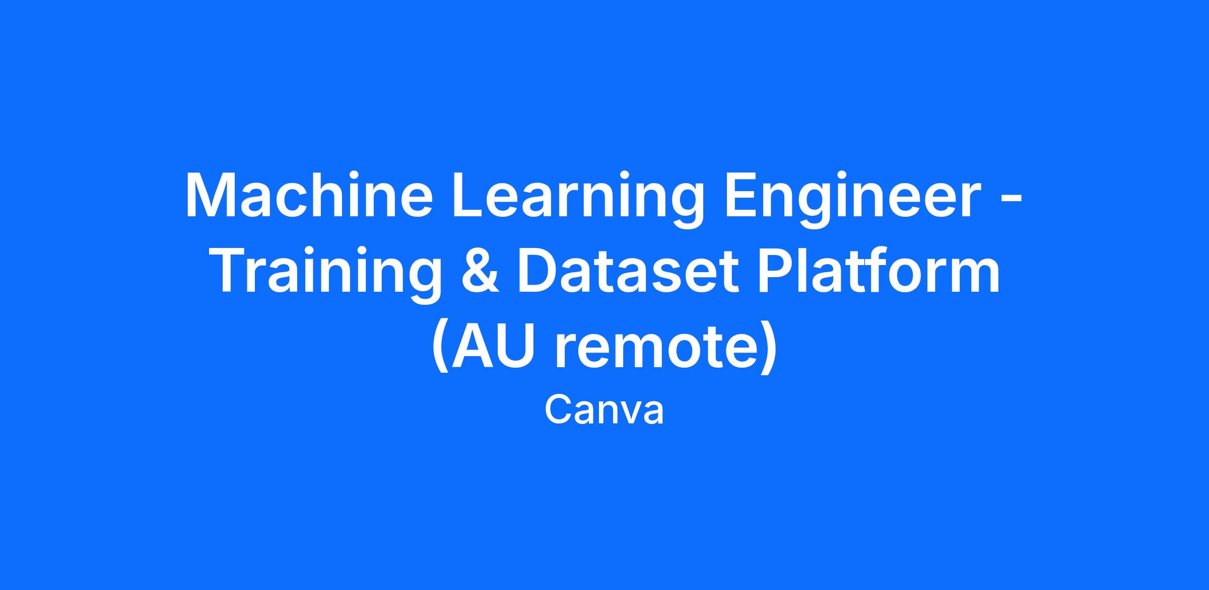 Machine Learning Engineer - Training & Dataset Platform (AU remote)