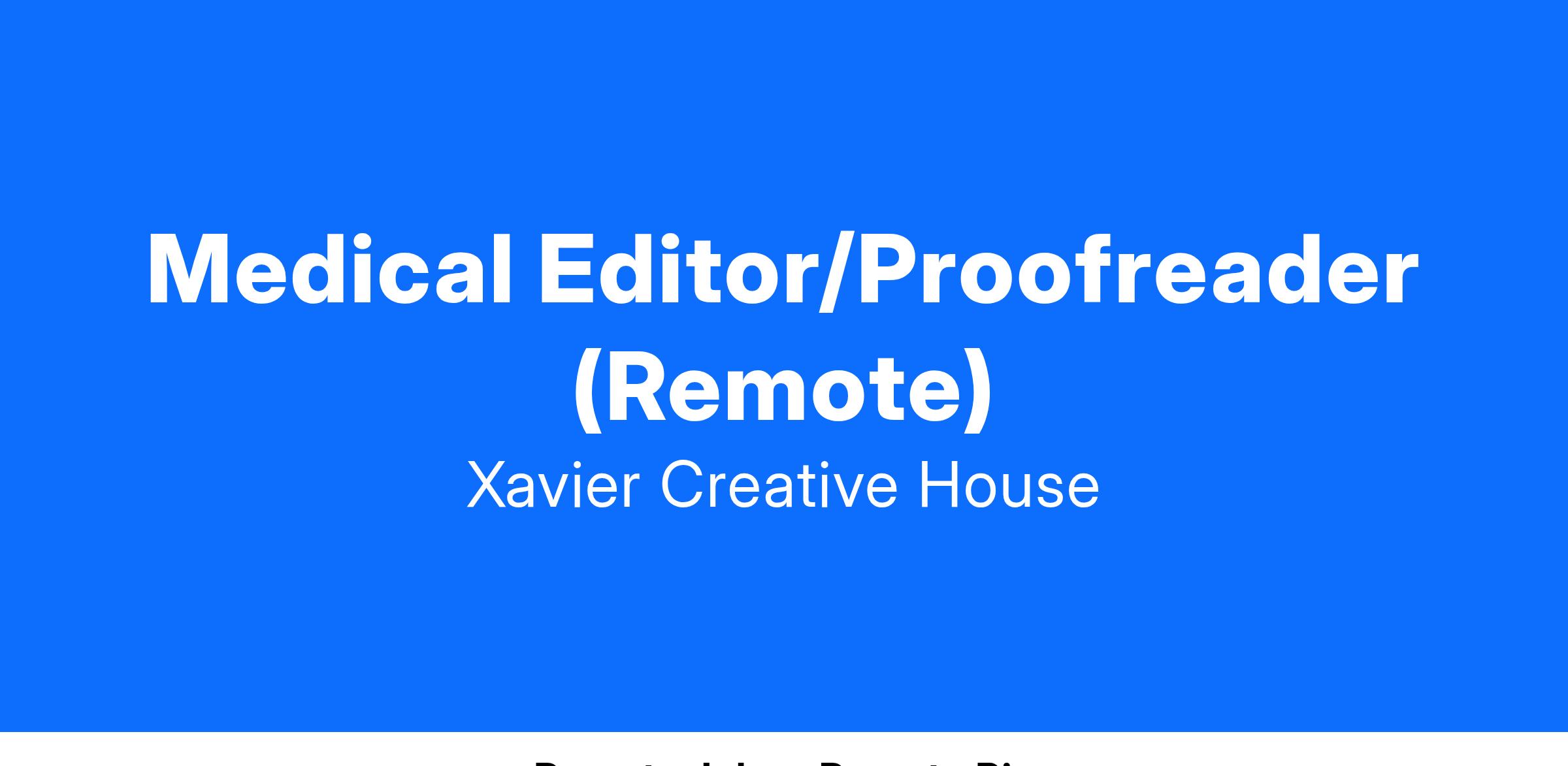 Medical Editor/Proofreader (Remote)