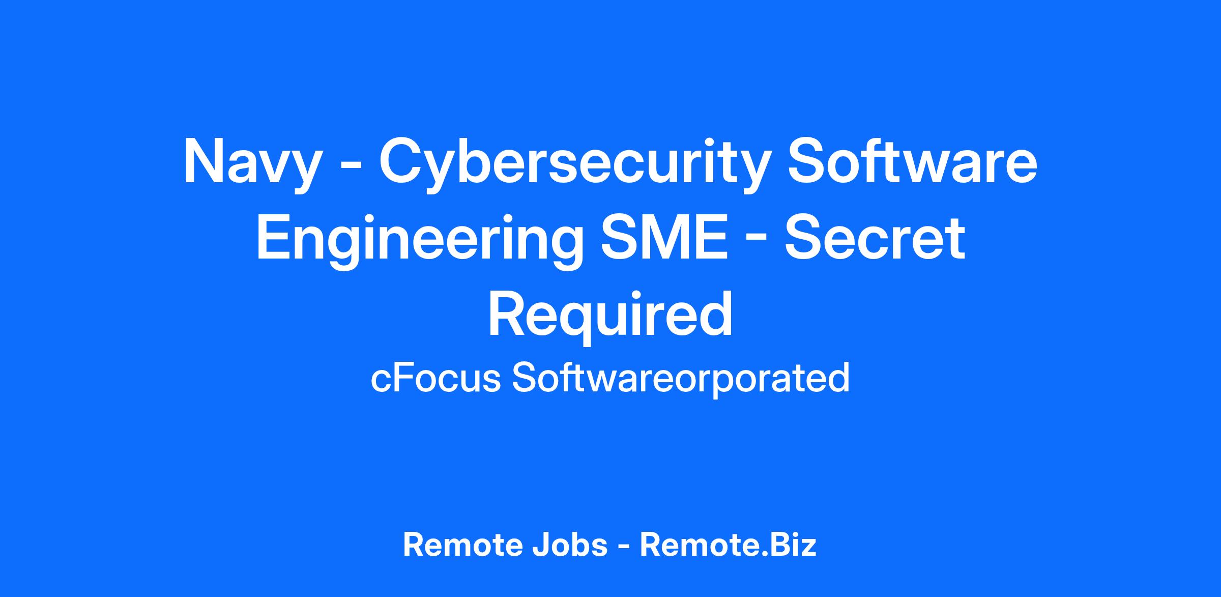 Navy - Cybersecurity Software Engineering SME - Secret Required