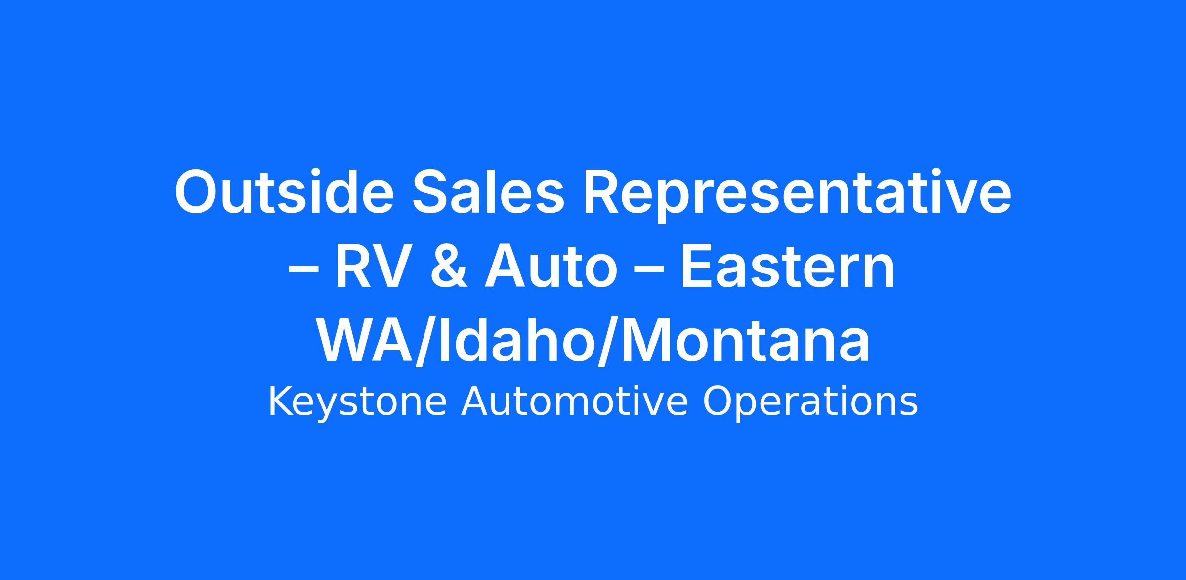 Keystone Automotive Operations is seeking an Outside Sales Representative to support our Eastern Washington region. This role is focused on developing new business, strengthening existing accounts, and serving as a trusted partner to customers across the automotive aftermarket. You’ll spend your time in the field understanding customer needs, recommending the right solutions, and delivering a high-quality purchasing experience. If you’re self-motivated, enjoy working independently, and take pride in driving results and achieving goals, this is an opportunity for you!
