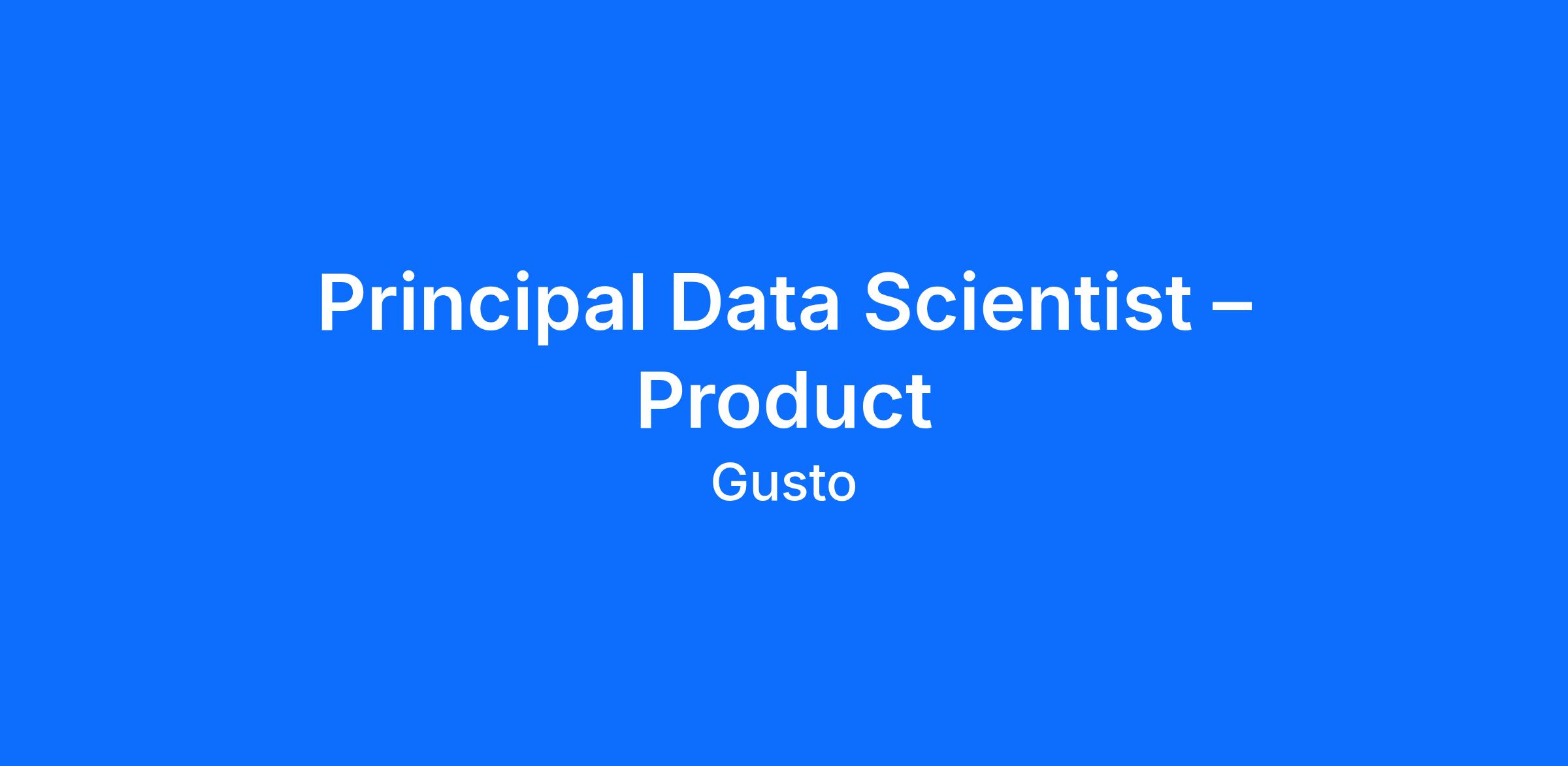 Gusto is looking for highly skilled and motivated Principal Data Scientists with extensive experience (10+ years) applying their expertise in a business environment. As a Product Data Scientist, you will play a crucial role in leveraging experimentation, statistical inference, and causal analysis to drive strategic decision making that contributes to the overall success of our organization. The ideal candidate is a trusted data storyteller with strong statistical and coding skills, and a passion for applying these skills to help small businesses thrive.