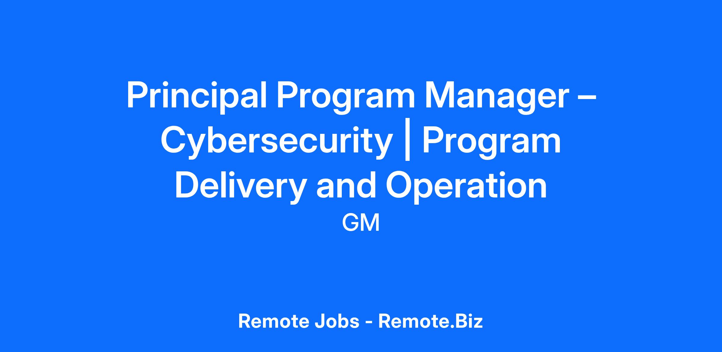 Principal Program Manager – Cybersecurity | Program Delivery and Operation