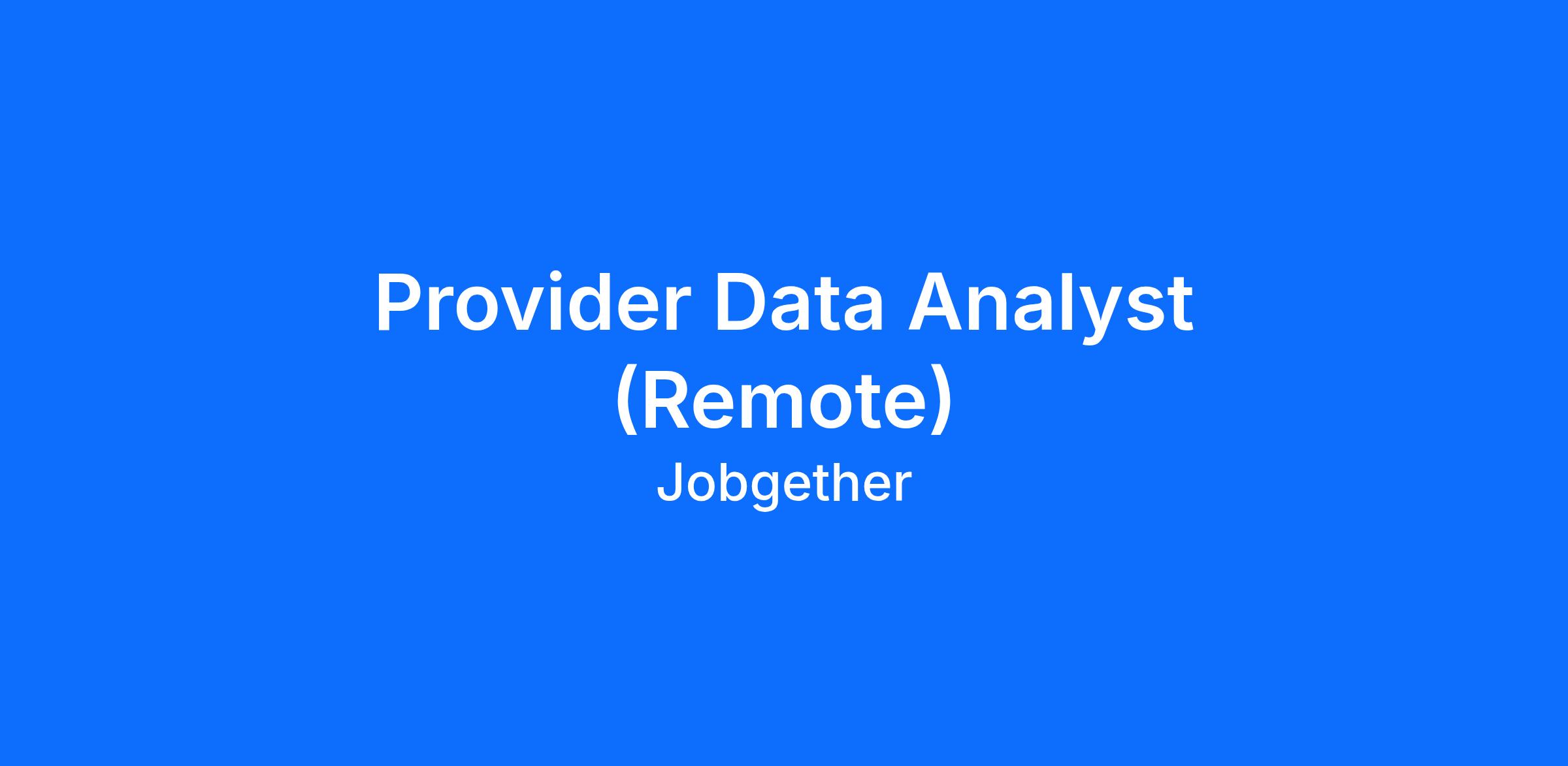 Provider Data Analyst (Remote)