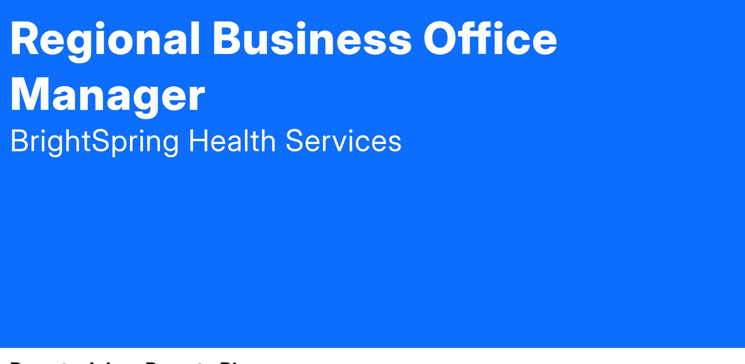 Opportunity for TRAVEL and HYBIRD work environment!! Our team is always growing and looking for highly motivated, focused and determined leaders to come be a part of our success. BrightSpring Corporate office is based out of Louisville, KY with offices in 47 different states, as a Regional Business Office Manger you will have the opportunity to work from your home location while traveling as need to support multiple locations in your designated region. Our Regional Business Office Mangers help our teams by providing oversight, training, support, and consulting of the monthly functions based on business regulations.