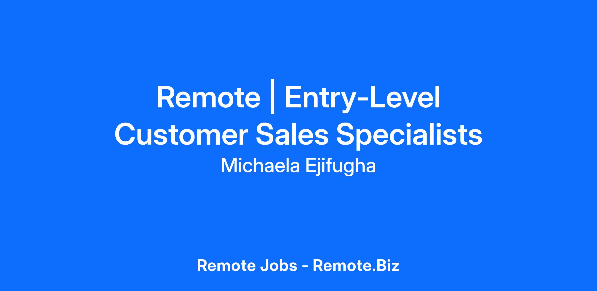 Remote | Entry-Level Customer Sales Specialists