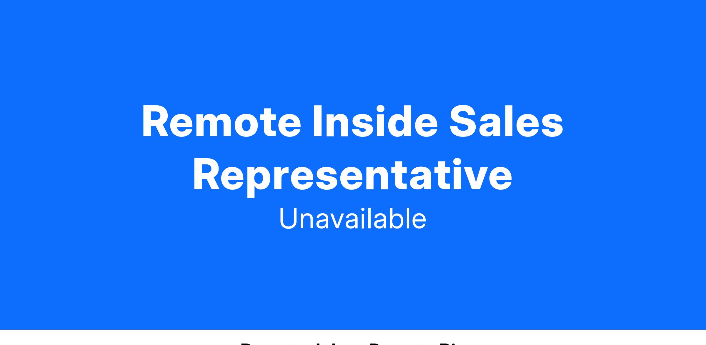 Our Remote Inside Sales Agent position is available for candidates based on the states of Georgia, North Carolina, New Jersey, South Carolina, Indiana, Massachusetts and West Virginia. Applicants must reside within these specified locations to be considered for this role.