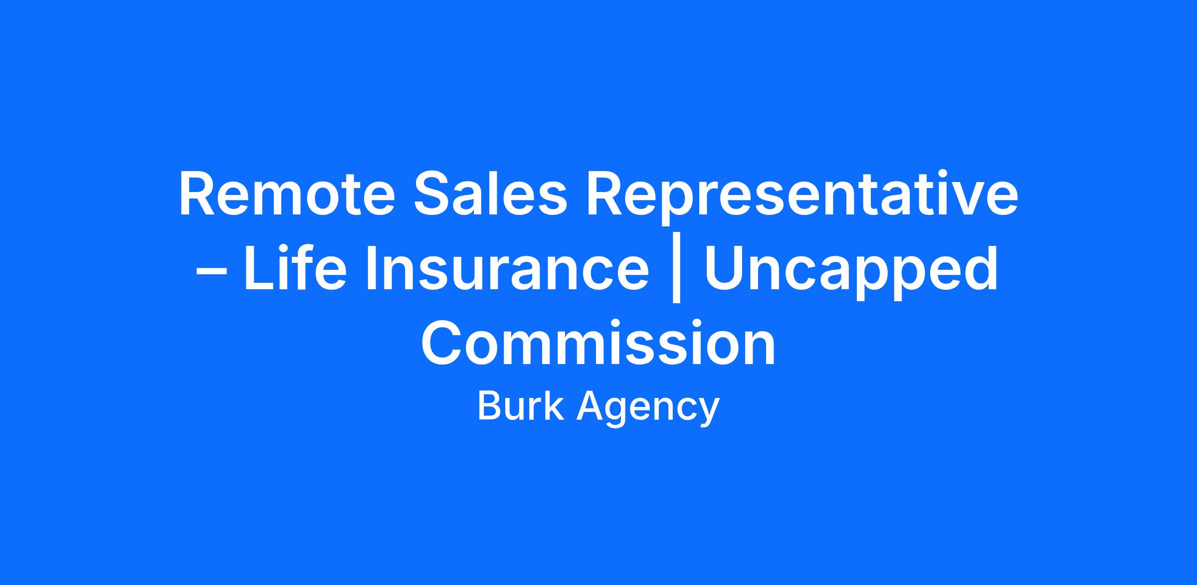 Remote Sales Representative – Life Insurance | Uncapped Commission