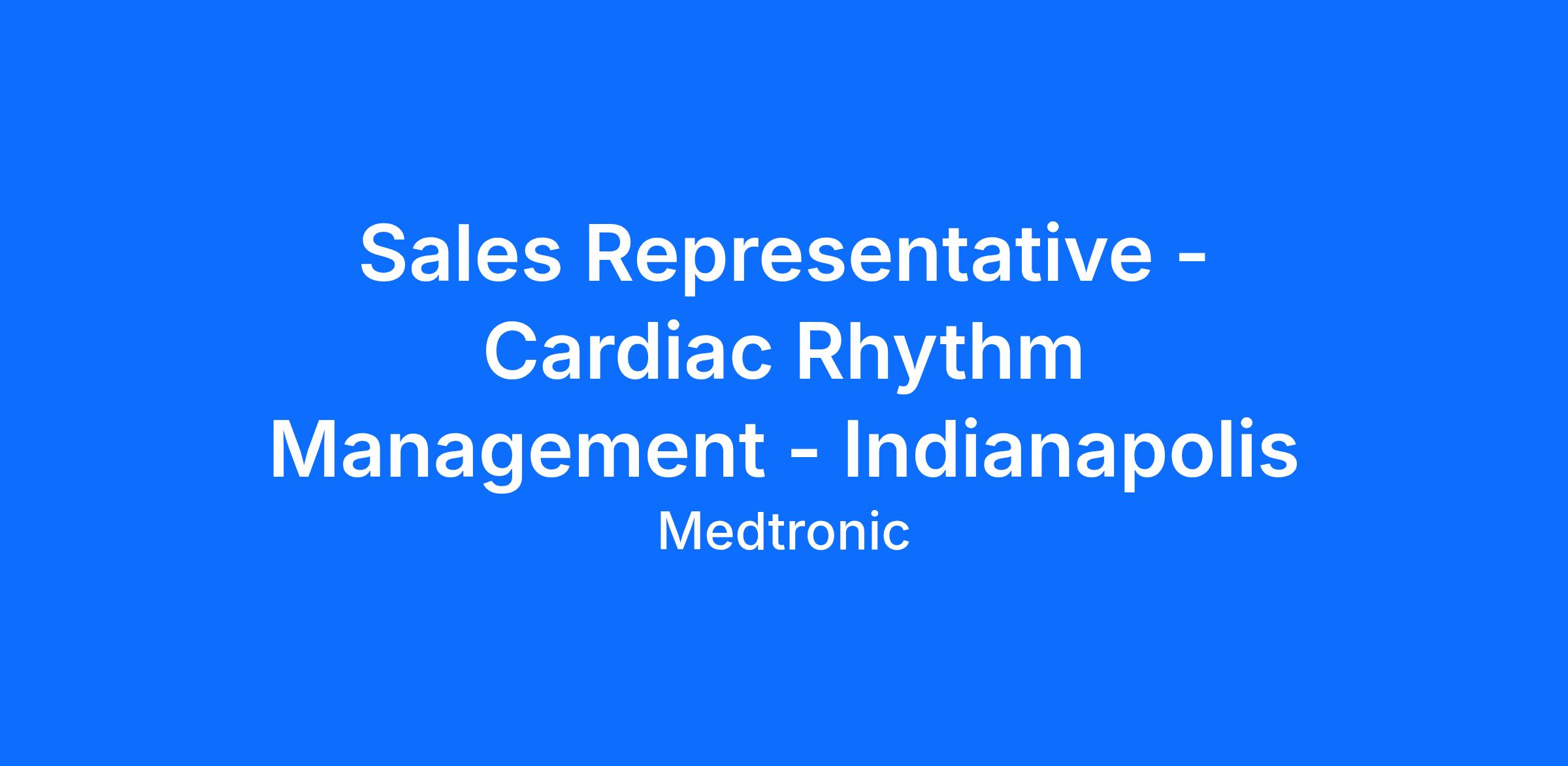 Sales Representative - Cardiac Rhythm Management - Indianapolis