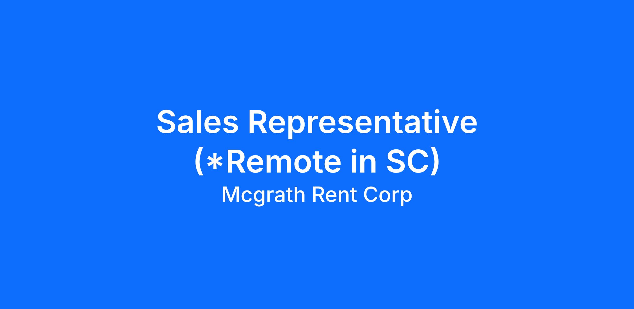 *Remote Position - Working from home and in the field with customers a few days per week. Must reside in South Carolina area.
