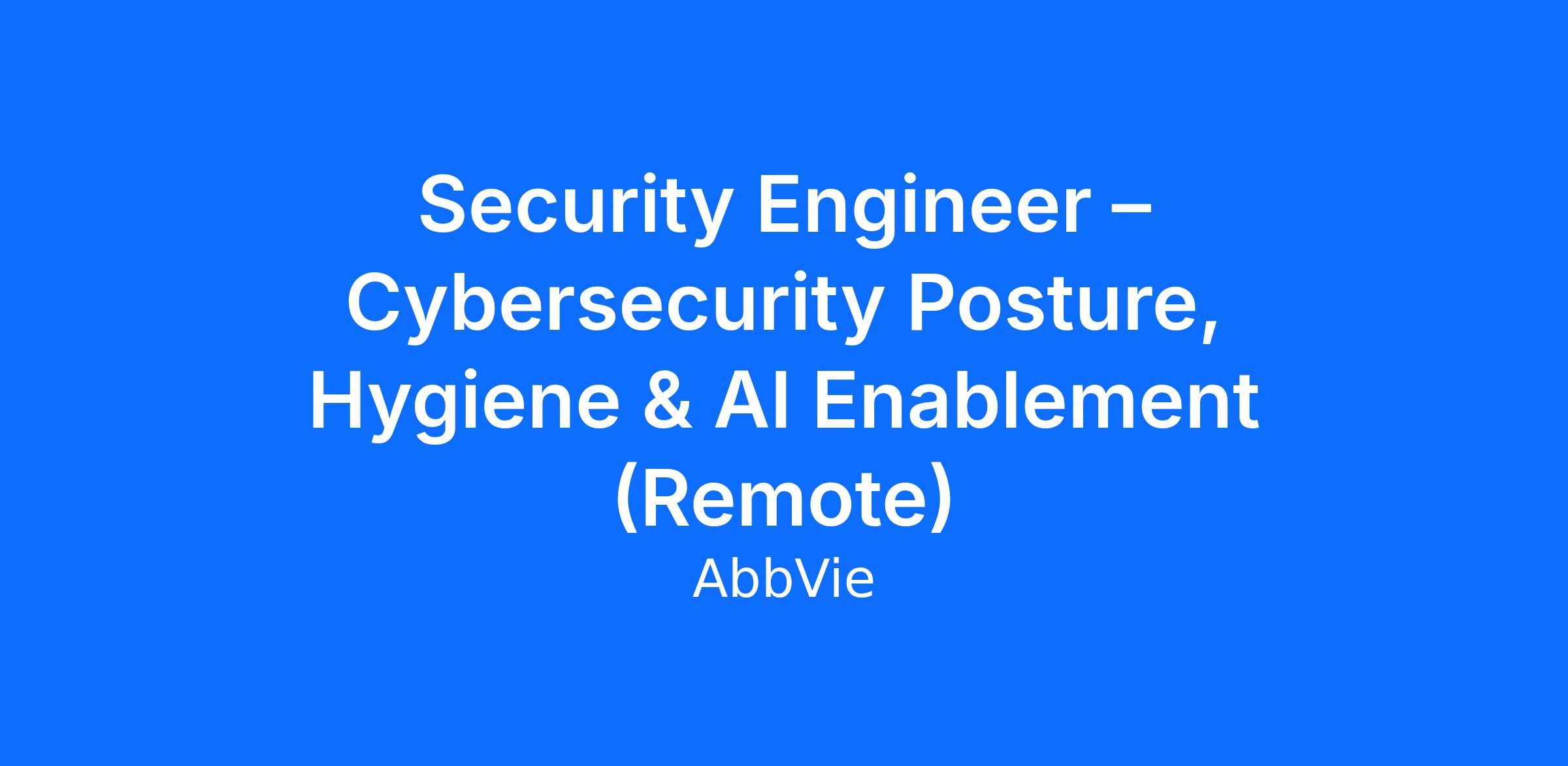 Come to work each day with an inclusive and collaborative Business Technology team! As a Security Engineer – Cybersecurity Posture, Hygiene & AI Enablement in AbbVie Business Technology Solutions (BTS), you’ll have opportunities to contribute to the digital transformation of a leading biopharma company, helping to create solutions that impact patients and their communities for the better.