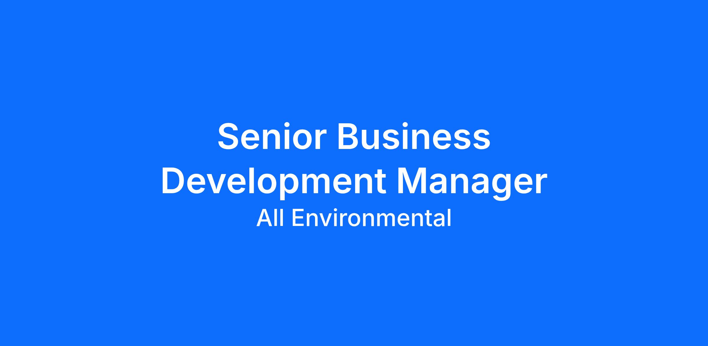 POSITION: Senior Business Development Manager