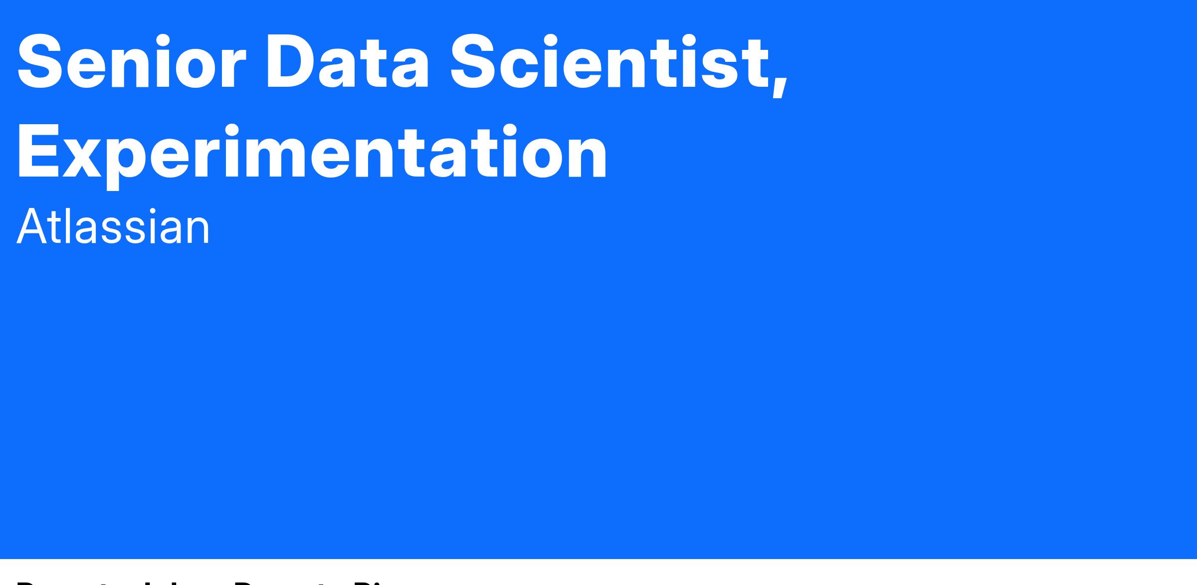 The Experimentation Data Science team sits within the in the Atlassian Corporate Engineering Organization. The team is tasked with pursuing opportunities to increase the velocity and value of experiments in Atlassian. We work cross-functionally with stakeholders in GTM, growth, product, data engineering, and analytics platform teams. We provide experimentation expertise for experimenting at scale and help teams experiment successfully by delivering training, tools, and analyses to go from idea to decision as quickly as possible. The teams we work with are split geographically across the US and Australia. We are highly nimble, with a focus on velocity between theory and practice, and laser-focused on business impact.