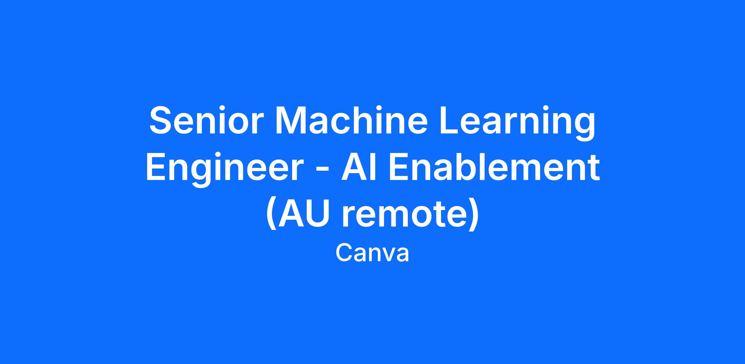 Senior Machine Learning Engineer - AI Enablement (AU remote)