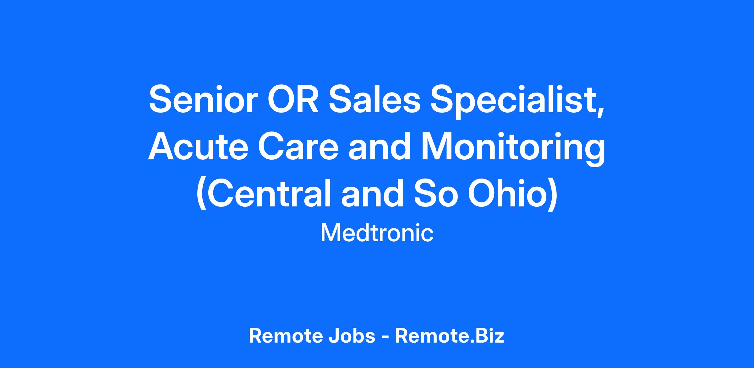 We are seeking a committed professional to join our team. While this is a remote position not located at a physical Medtronic site, the candidate hired will be required to reside within the territory and drive to multiple accounts throughout the region. A valid driver's license is essential for this role.