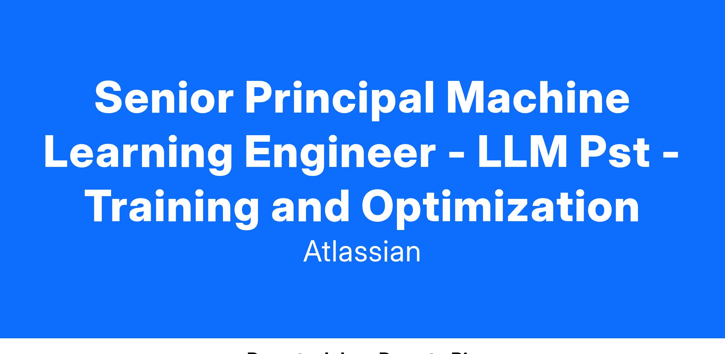Atlassian is a global leader in team collaboration and productivity software, empowering teams to unleash their potential and achieve remarkable results. Our suite of tools, including Jira, Confluence, Trello, Bitbucket, and Rovo, is trusted by millions of users worldwide to plan, track, and manage their work effectively. At Atlassian, we are dedicated to building innovative tools and technologies that drive the future of work. Weβre seeking a highly skilled and experienced Senior Principle Machine Learning Engineer to propel our efforts in Large Language Model (LLM) post-training and optimization, shaping the future of intelligent, team-centric solutions.