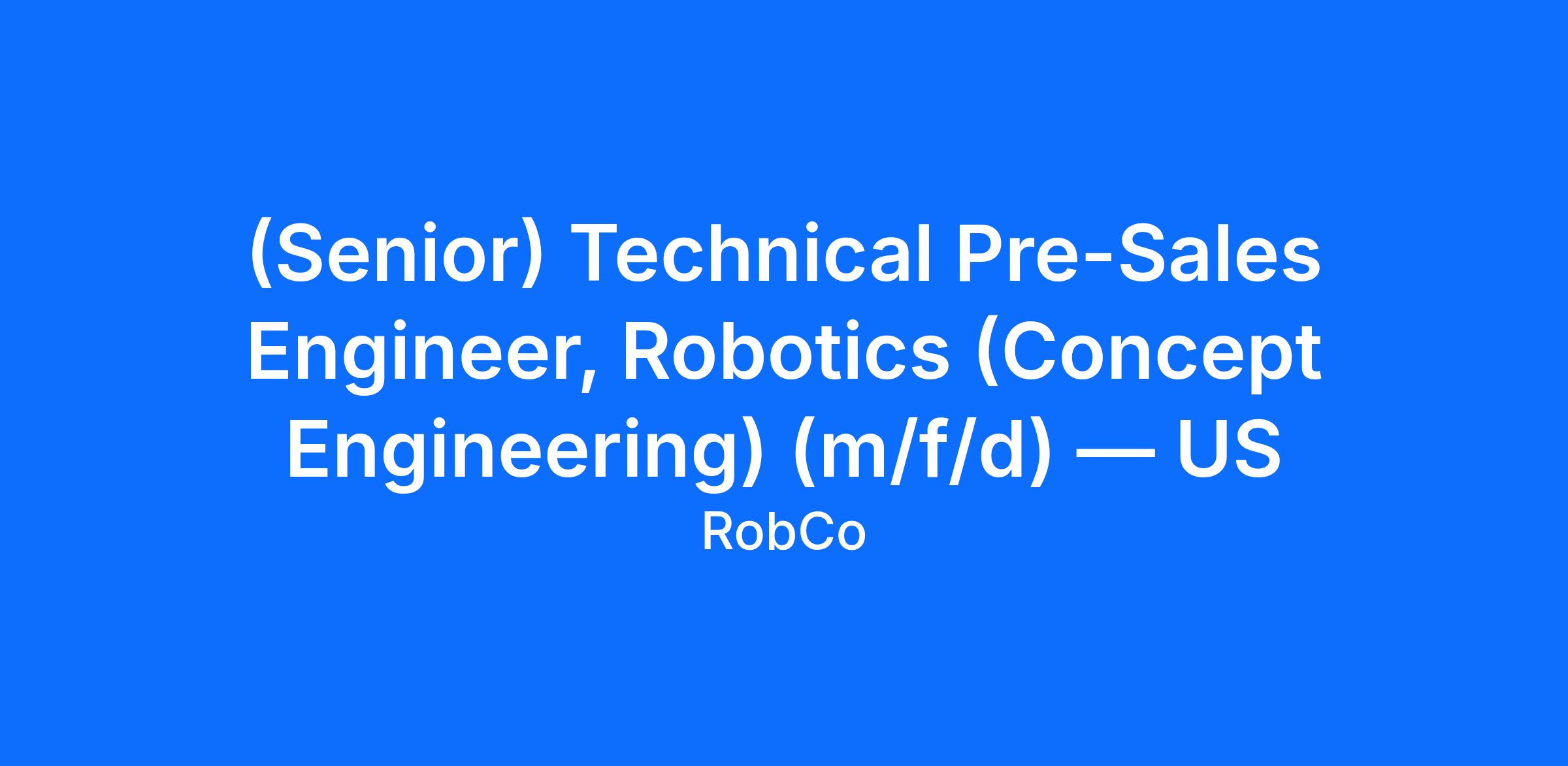 What makes this role unique: This is not a classic sales engineering or system integrator position. At RobCo, you design real automation solutions that combine modular robotics hardware with AI-driven software (e.g., vision, motion, autonomous behaviors).