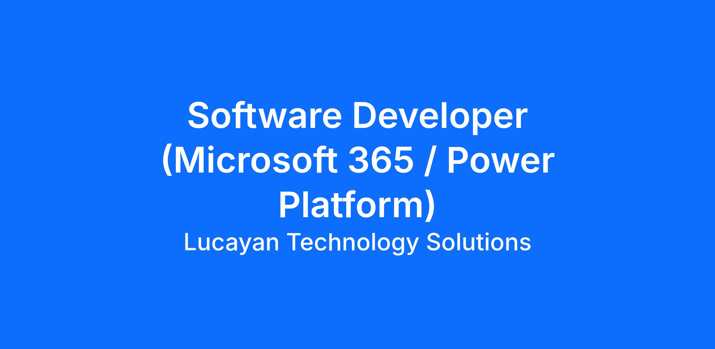 Employment Type: Full-TimeOverviewLucayan Technology Solutions is seeking Software Developers to design, develop, and maintain software solutions within the IRS Microsoft 365 (M365) environment. Multiple positions are available. These roles will focus on Power Platform development, .NET applications, automation, and SharePoint integration. The ideal candidates bring hands-on experience in Microsoft cloud technologies, automation scripting, and supporting federal or large enterprise environments with high compliance requirements.Key Responsibilities - Design, develop, test, and deploy applications using PowerApps, Power BI, and Power Automate.