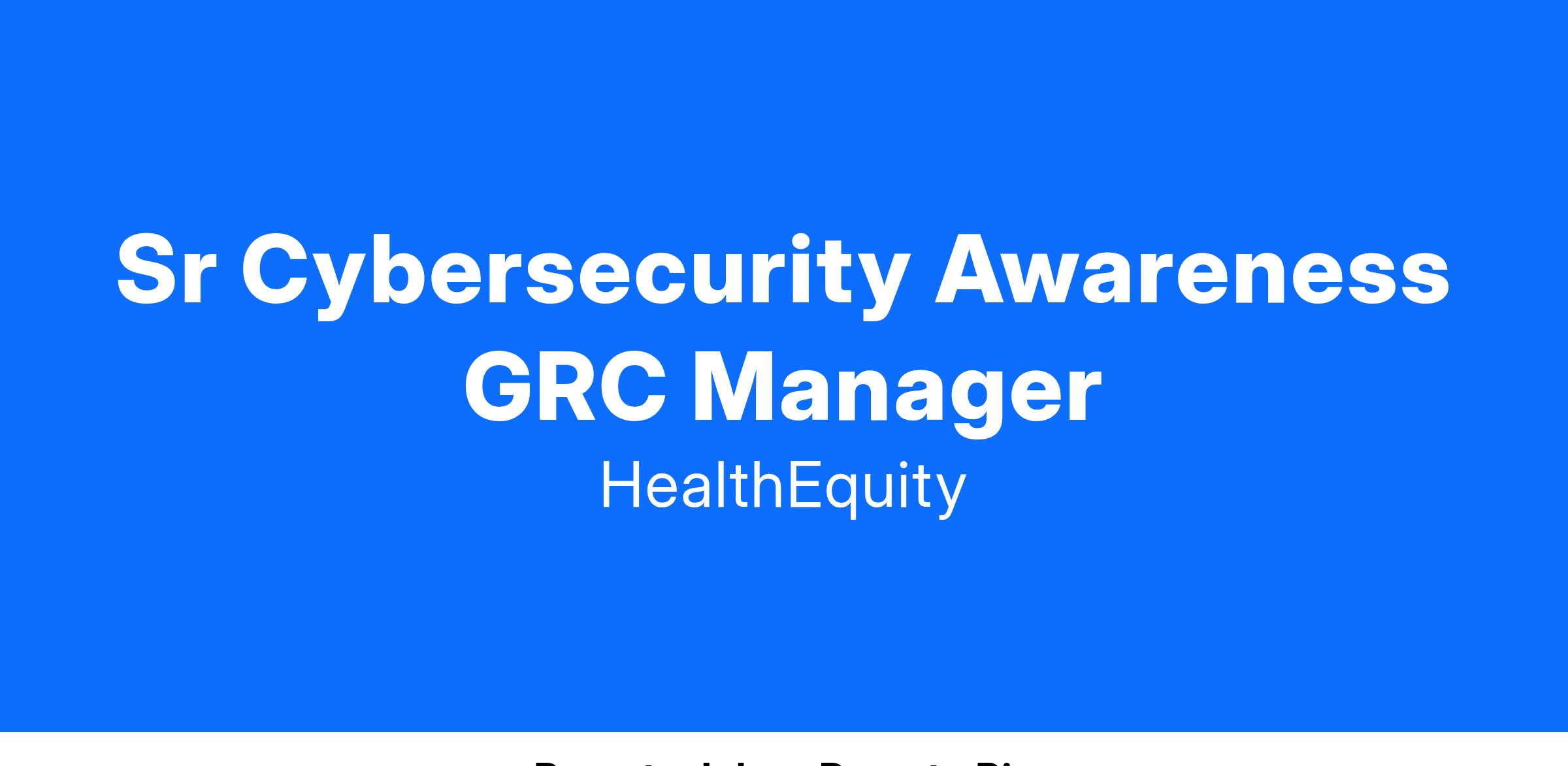 We are looking for a Sr. Security Awareness GRC Manager to lead our cybersecurity awareness program. You will work closely with security, internal audit, enterprise risk management, product, and all relevant technology stakeholders across the company to identify human related risks within the organization, creating strategic initiatives to develop and implement a comprehensive security awareness program that educates employees about security policies, procedures, and best practices.