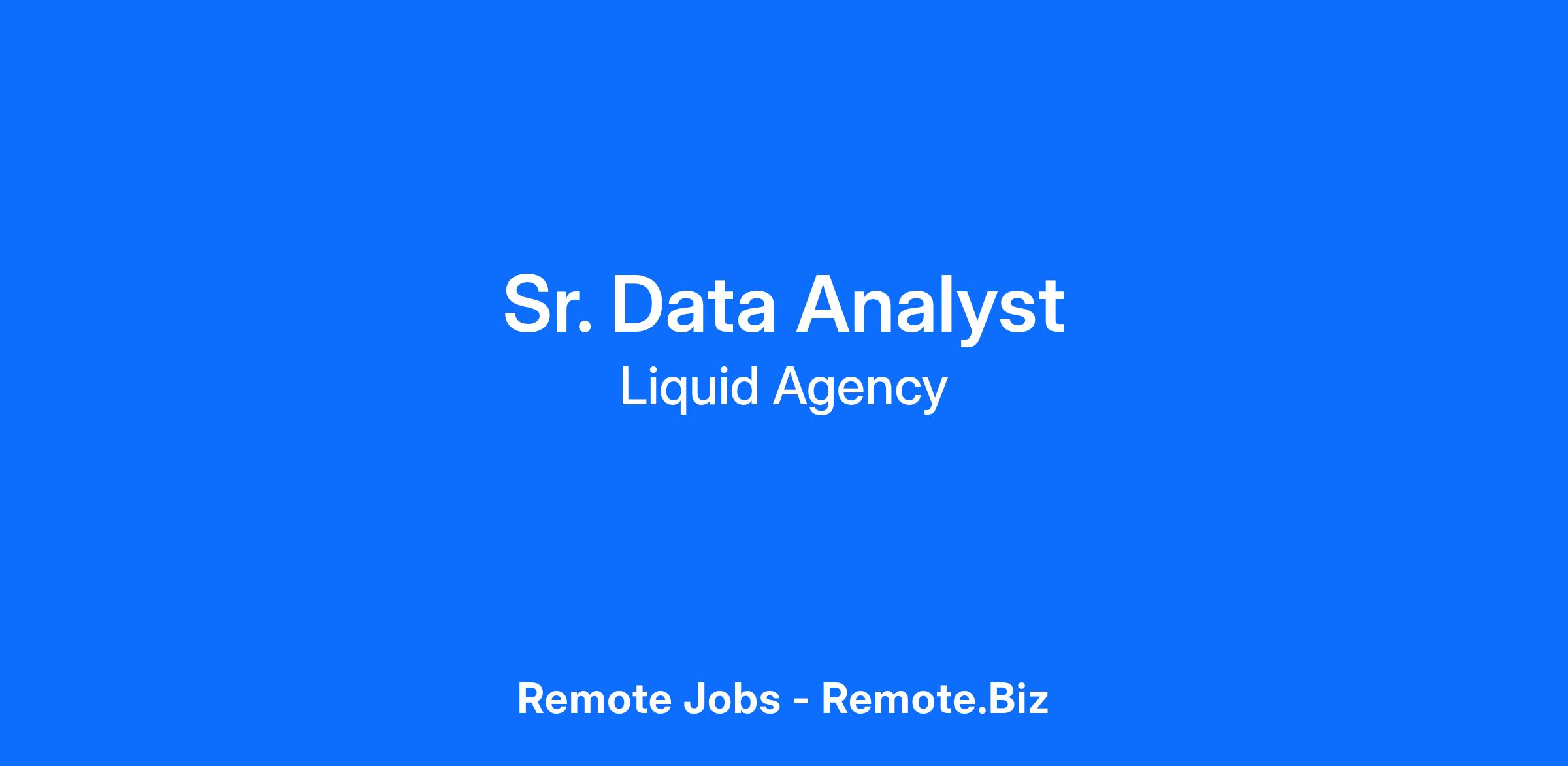 Liquid Agency is looking for a sharp, curious, and impact-driven Senior Data Analyst to help us connect excellence with measurable business results.