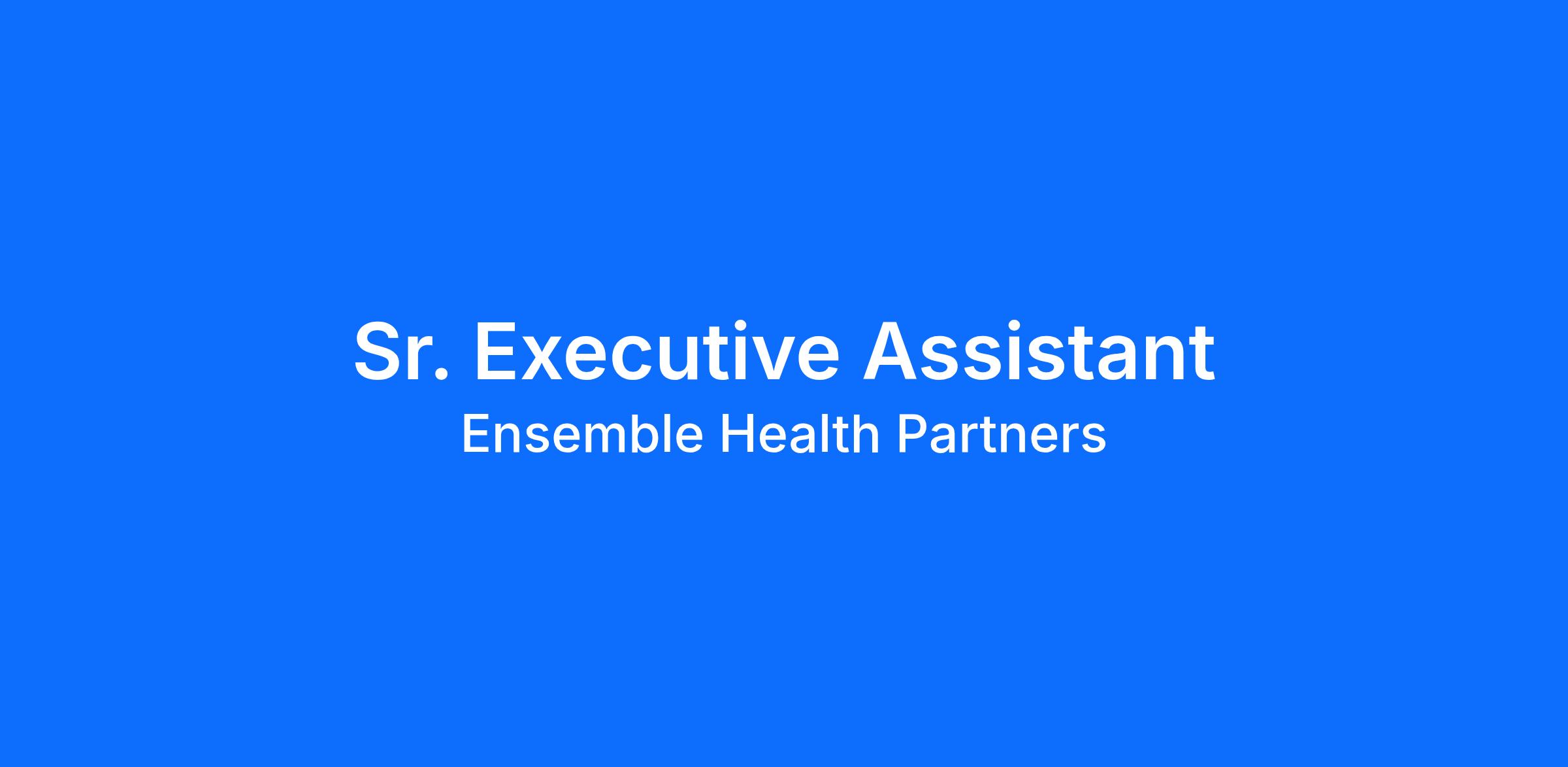 The Executive Assistant to an Ensemble Health Partners SG&A Executive is responsible for providing comprehensive administrative and coordination support. This dynamic position requires the ability to anticipate needs, think critically, manage projects, and offer solutions to problems with a high level of professionalism and confidentiality.