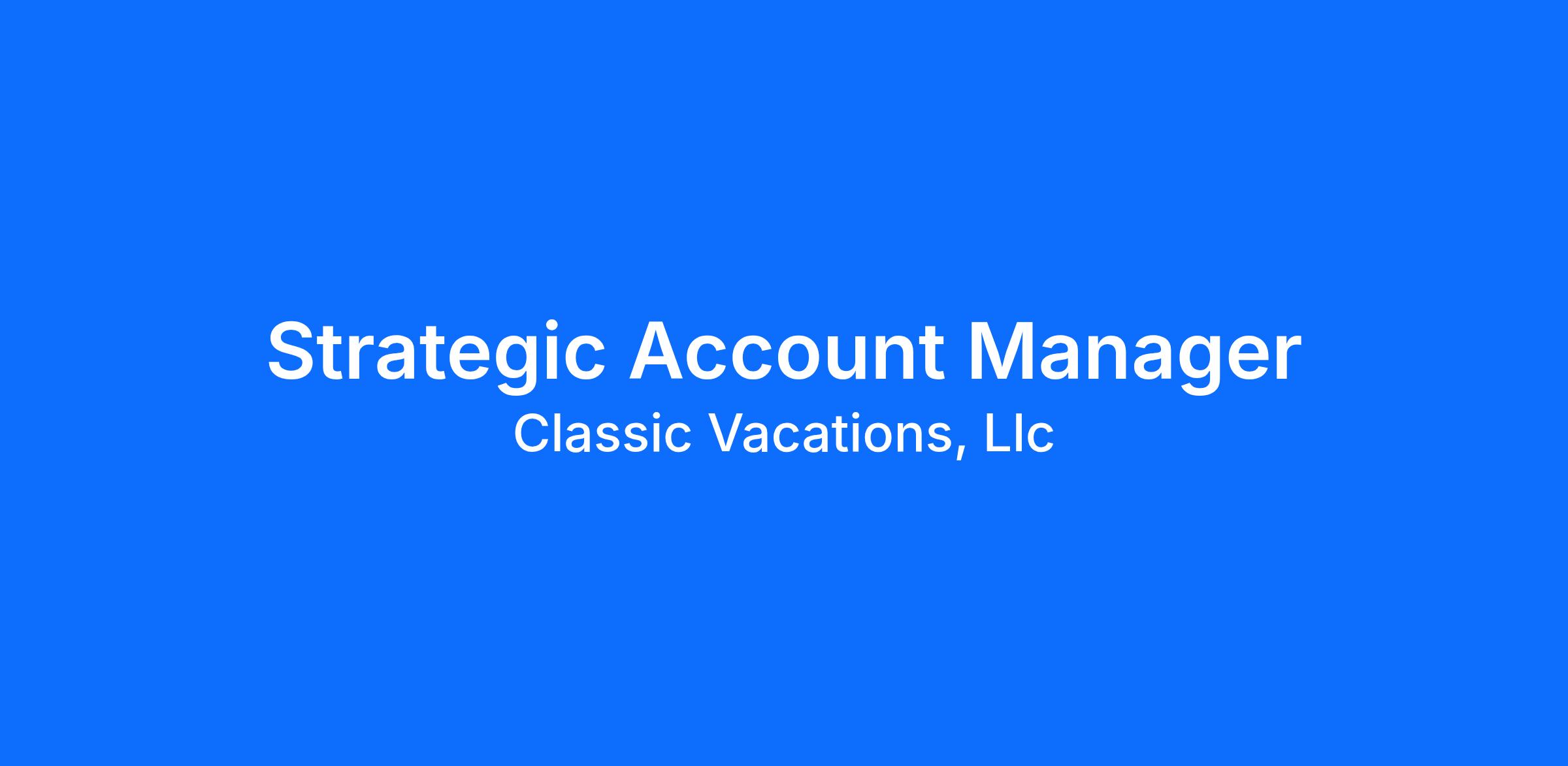 As the Strategic Account Manager for Classic Vacations, you will be at the forefront of our mission to redefine both premium and luxury travel experiences. This pivotal role combines strategic vision with hands-on leadership, aiming to drive our growth objectives while fostering a culture of collaboration and accountability. You will identify and secure new business opportunities that align with our goals, expand our client base, and establish strategic partnerships that enhance our market presence.