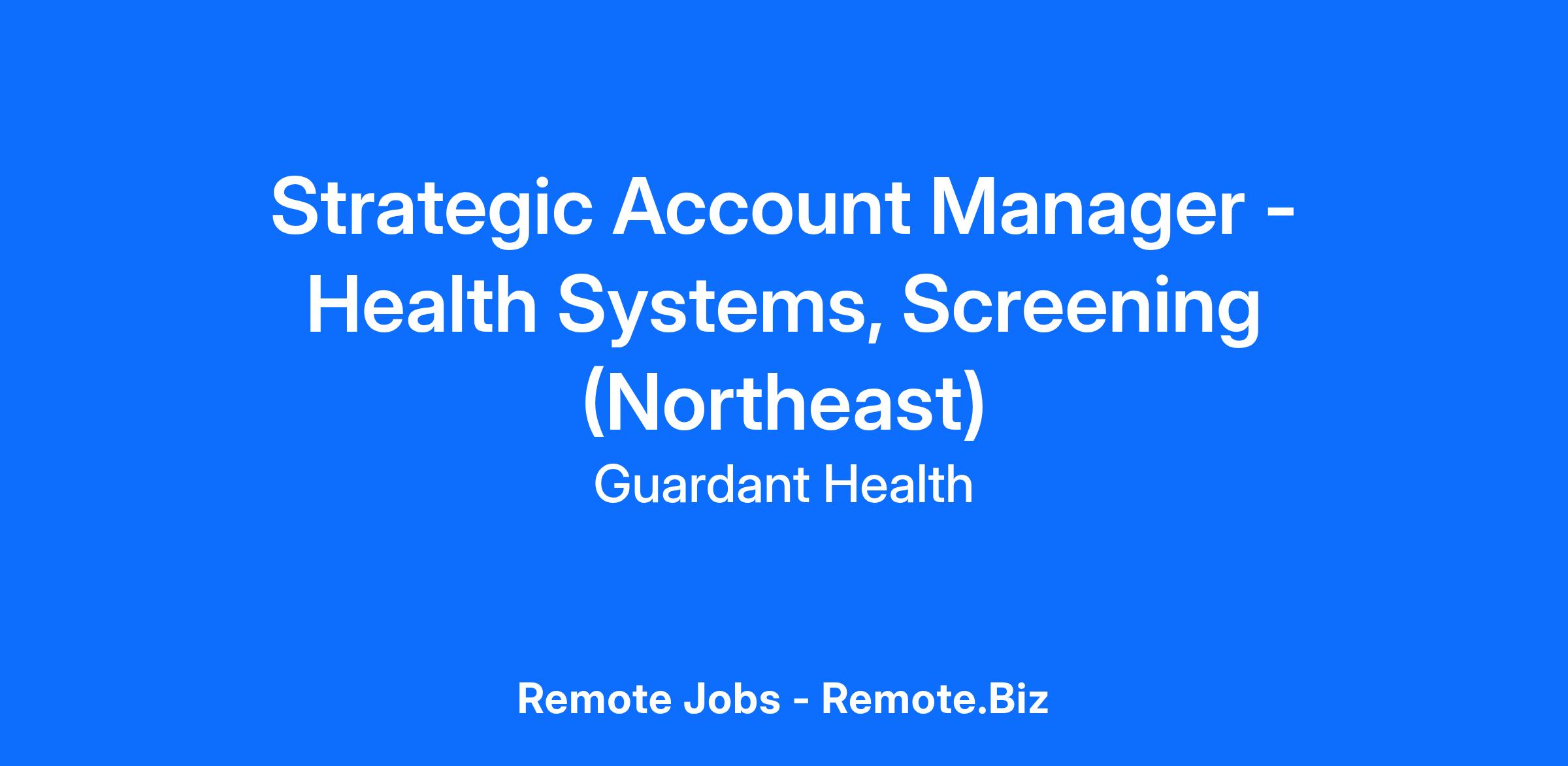 As a Strategic Account Manager, Health Systems-Screening, you will drive strategic growth and market access for Shield, Guardant Health’s groundbreaking cancer screening solution, across major Integrated Delivery Networks (IDNs) and Health Systems.