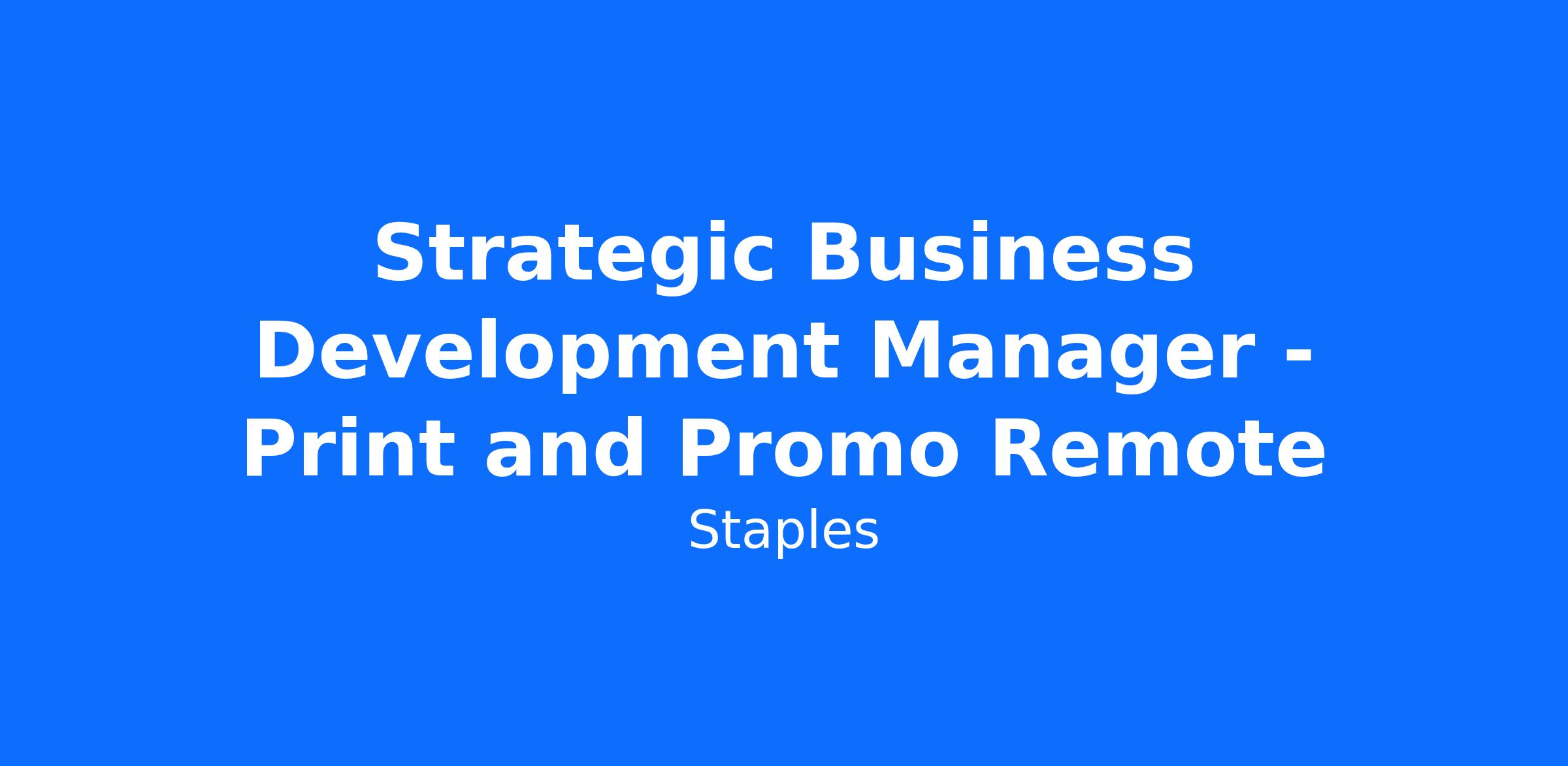 The Strategic Business Development Manager (SBDM) will directly prospect and acquire high value clients in the Enterprise & Mid-Market business space. He or she will place focus and emphasis on customers with a large spend volumes >$100K. The incumbent will secure meeting with key decision-makers, assess pain & opportunity areas in the business and present Staples’ holistic suite of print & promo services that address those key insights. The SBDM will prepare proposals, navigate legal & contractual requirements, and advance deals through to conclusion. He or she will onboard Account Managers or Strategic Account Manager who will oversee the account implementation and ongoing maintenance and stay close to the account during this period and on an ongoing basis throughout the account lifecycle.