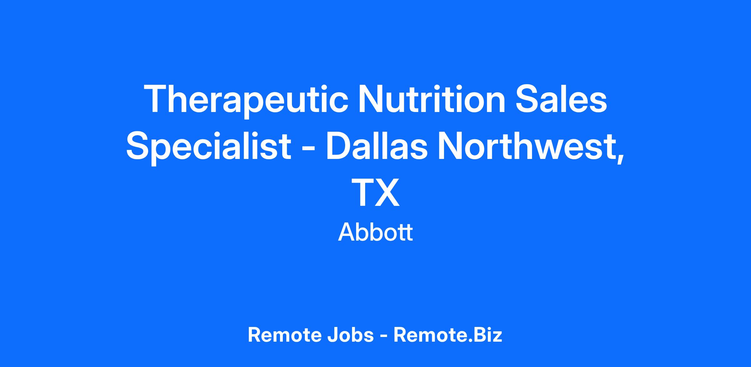 Therapeutic Nutrition Sales Specialist – Dallas Northwest, TX