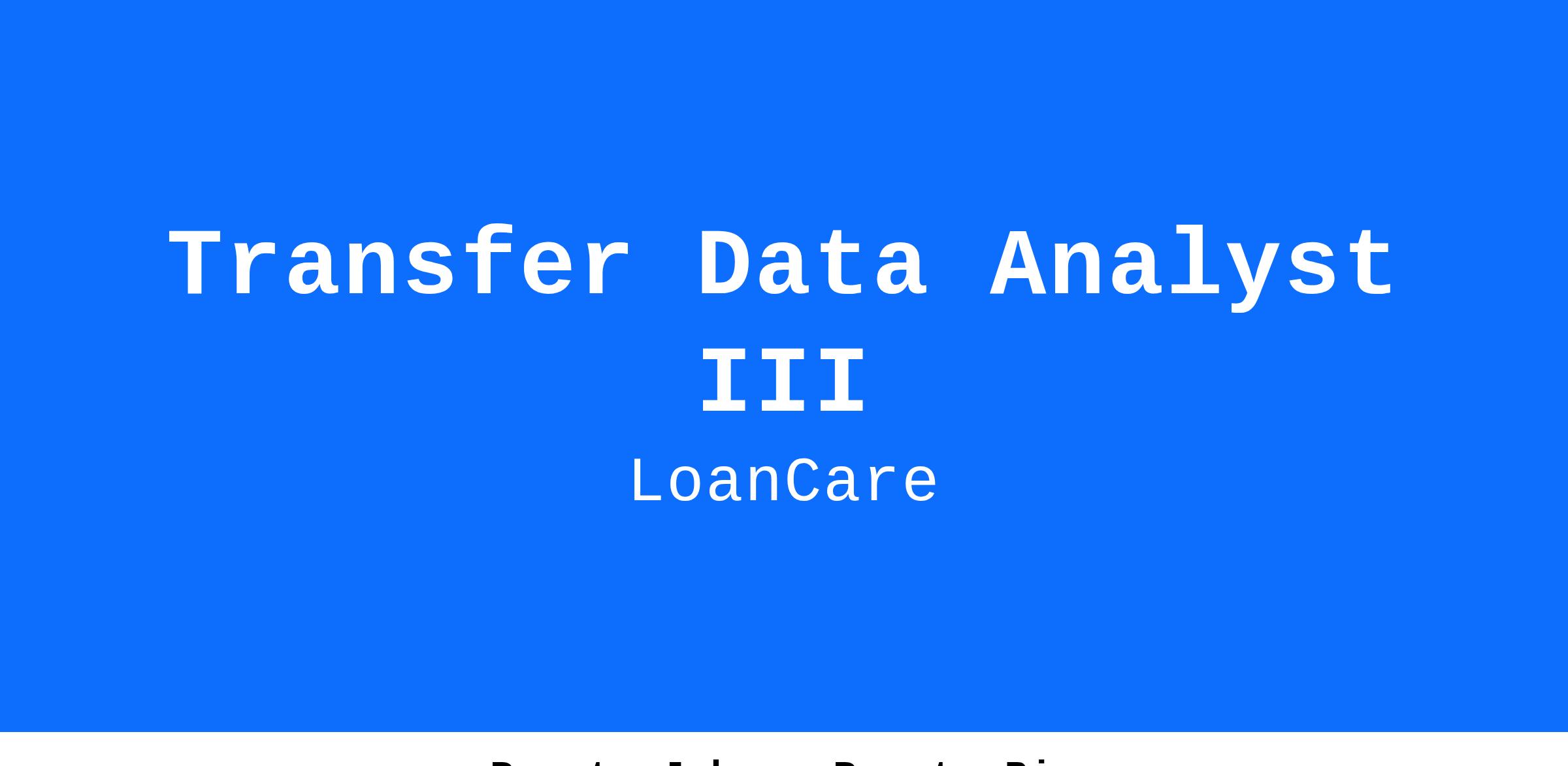 We are actively seeking to fill the role of Transfer Data Analyst III. Our ideal candidate enjoys working with clients, both internal and external, eager to learn and maximize results, is detail oriented and driven to meet tight deadlines in a fast-paced environment. Background in the mortgage or real estate industry is a plus. If this sounds like you, and you are ready for a career and not just your next job, apply today!