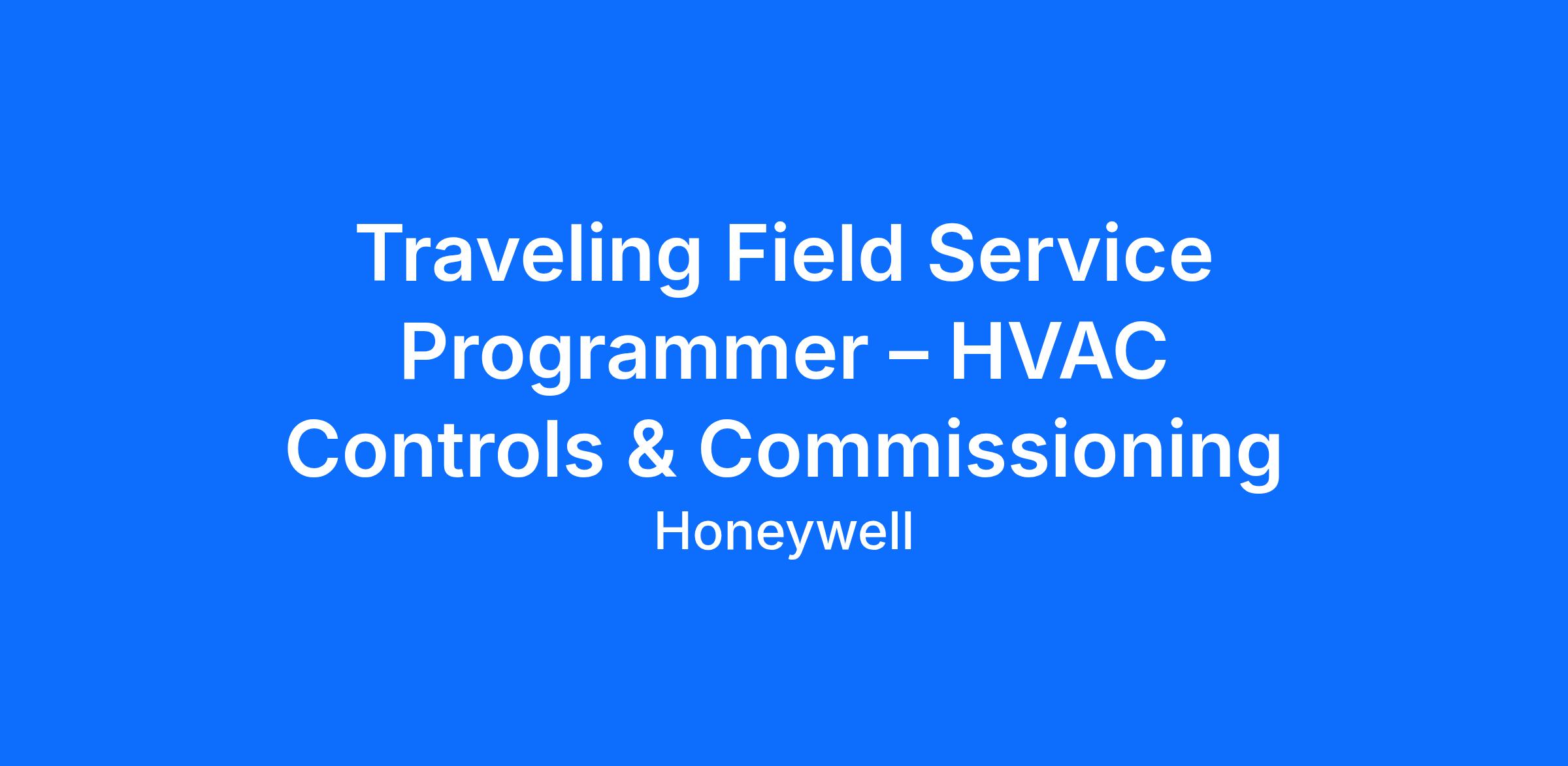As a Traveling Field Service Programmer – HVAC Controls & Commissioning here at Honeywell, you will be accountable for providing technical assistance and service to our customers in the HVAC industry. You will play a crucial role in ensuring the successful installation, maintenance, and troubleshooting of HVAC control systems. Your expertise and dedication to customer satisfaction will contribute to the efficiency, comfort, and safety of our customers' buildings (commercial sites). In this role, you will have the opportunity to make a significant impact by delivering exceptional service and assistance to our customers in the HVAC controls industry.