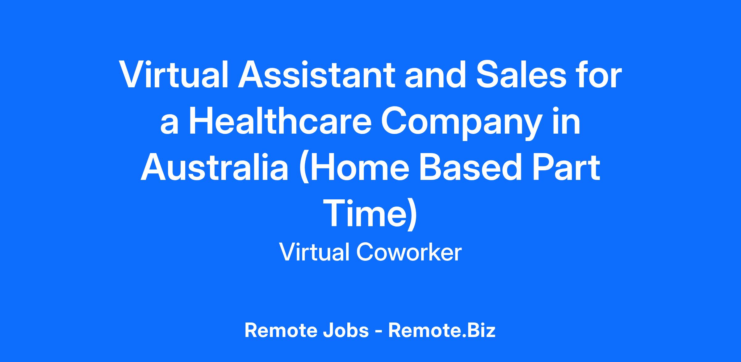 https:\/\/www.linkedin.com\/company\/virtual\-coworker"}],"isMobile":false,"iframe":"true","jobType":"Full Time \/ Part Time","applyName":"Apply Now!","zsoid":"8208015","FontFamily":"Arial, Helvetica, sans\-serif","jobOtherDetails":[{"fieldLabel":"Job Category","uitype":2,"value":"Virtual Assistant"},{"fieldLabel":"Work Schedule","uitype":1,"value":"Monday to Friday, 10:00am to 3:00pm Australian Eastern Standard Time"},{"fieldLabel":"Hours Per Day","uitype":2,"value":"Part Time \- 4 Hours per day"},{"fieldLabel":"Industry","uitype":2,"value":"Health Care Industry"},{"fieldLabel":"Client Location","uitype":2,"value":"Australia"},{"fieldLabel":"Work Location","uitype":1,"value":"Home Based \- Philippines"},{"fieldLabel":"City","uitype":1,"value":"Bondi Junction"},{"fieldLabel":"State\/Province","uitype":1,"value":"New South Wales"},{"fieldLabel":"Zip\/Postal Code","uitype":1,"value":"2022"}],"headerName":"Virtual Assistant and Sales for a Healthcare Company in Australia (Home Based Part Time)","widgetId":"147741000000390320","isJobBoard":"false","userId":"147741000000027001","attachArr":[],"customTemplate":"3","isCandidateLoginEnabled":true,"jobId":"147741000064866555","FontSize":"12","googleIndexUrl":"https:\/\/virtualcoworker.zohorecruit.com\/recruit\/ViewJob.na?digest=mYhLPVmsdoeEYzvtj4AKbYQgAXuOmUJFMFgpIhpshzM\-&embedsource=Google","location":"Bondi Junction","embedsource":"CareerSite","logoId":"idwop0ece2fcac21a443ba16938fb832bdc3b"}